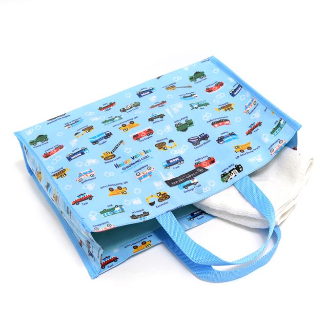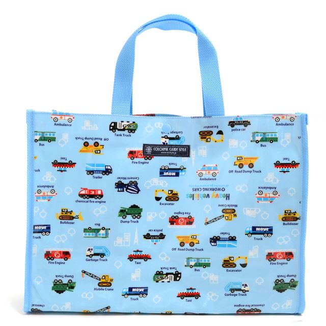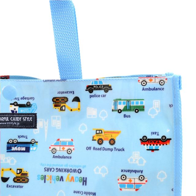 プールバッグ ラミネートバッグ(スクエアタイプ) アクセル全開はたらく車(ライトブルー)