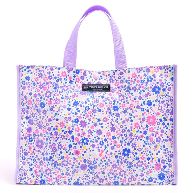 プールバッグ ラミネートバッグ(スクエアタイプ) フラワー模様のエアリーシャワー(ラベンダー)