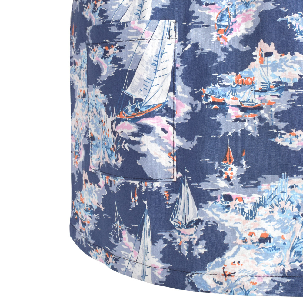 揺らぐ水面にボートやヨットが集い、島々や灯台などが絵画調に描かれ、海岸沿いの楽しい夏の風景を思い起こさせてくれるプリントです。