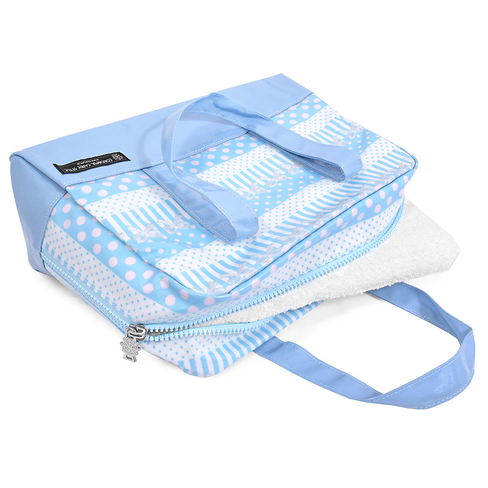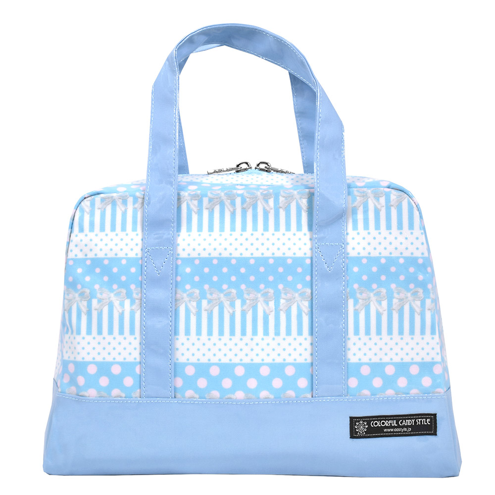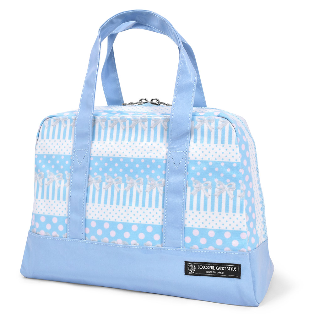 セミボストン(プールバッグ) ポルカドットとレースリボンに魅せられて(ライトブルー)