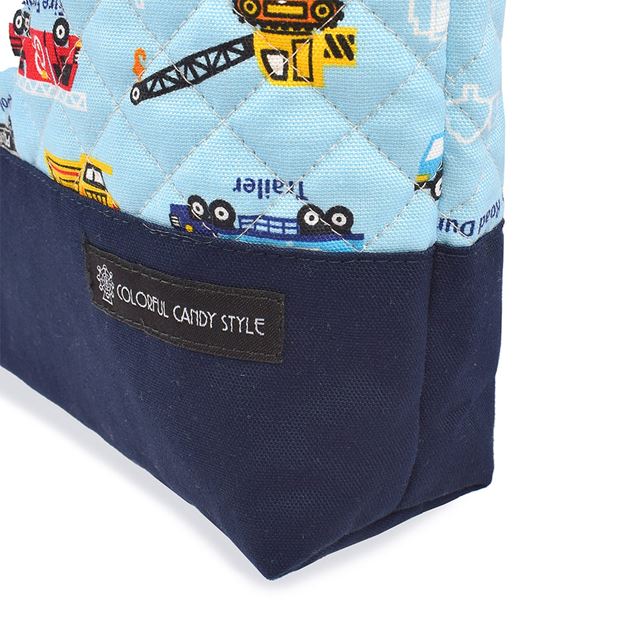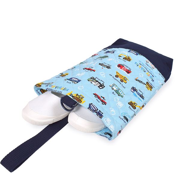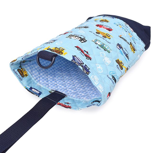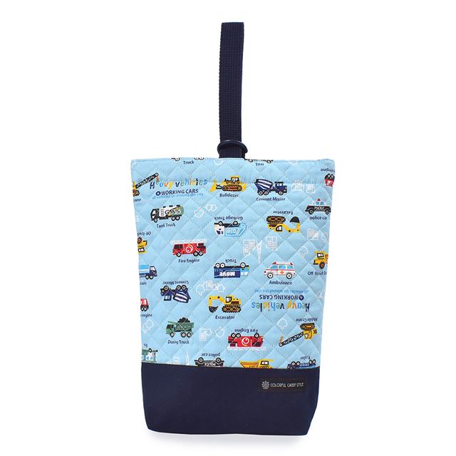 シューズケース キルティング(ネームタグ付き) アクセル全開はたらく車(ライトブルー)