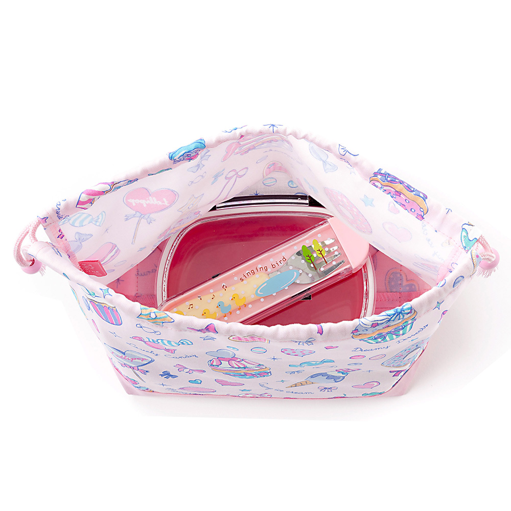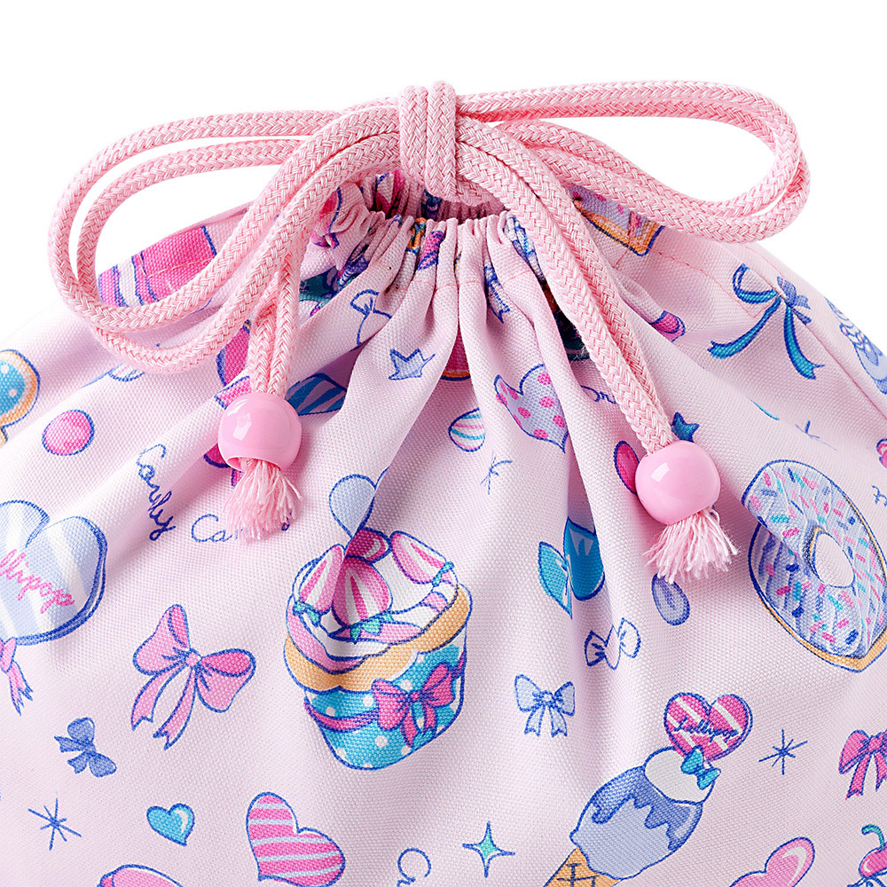 巾着 中 マチ有りお弁当袋(ネームタグ付き) ミルキースイーツのキャンディアラモード