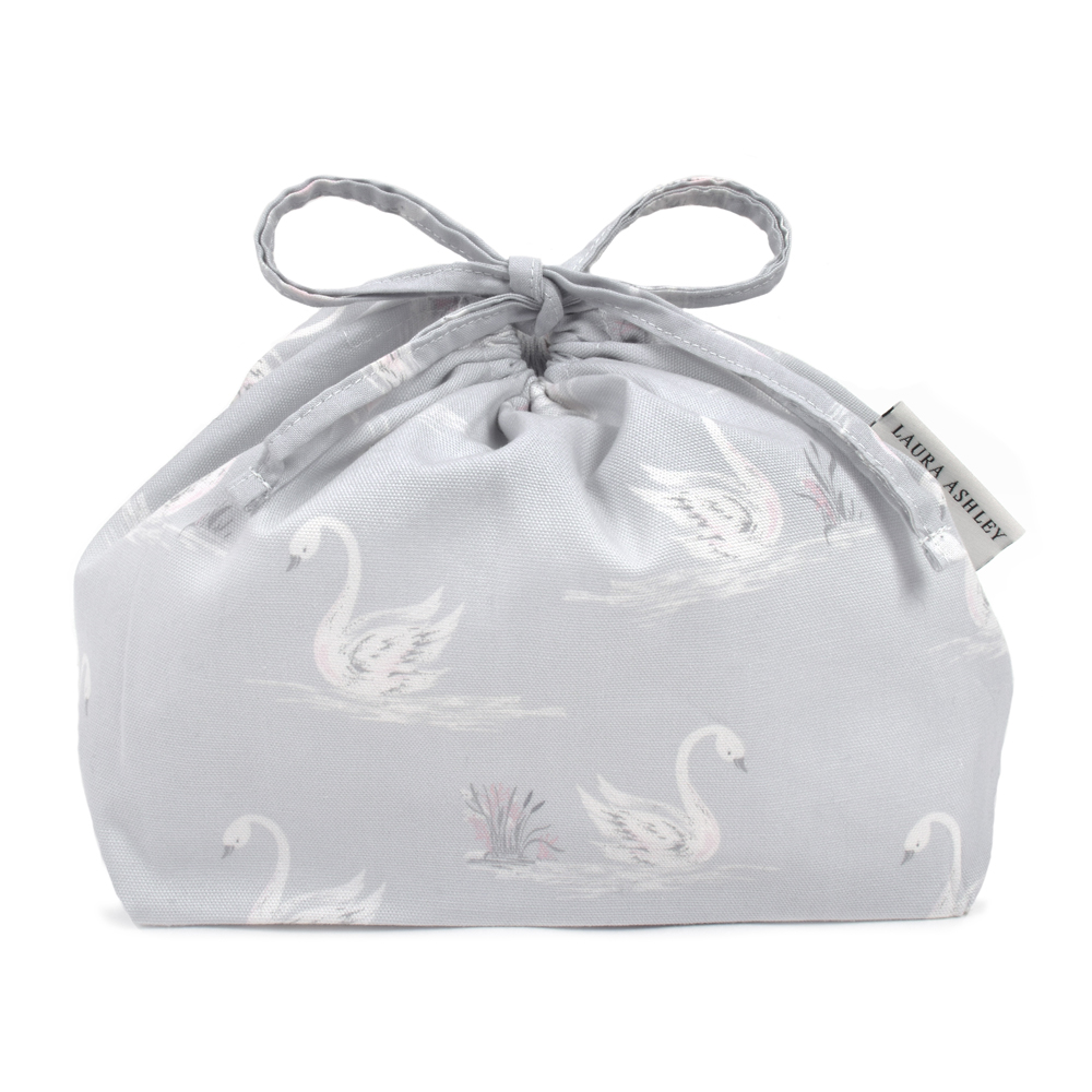 LAURA ASHLEY 巾着 中 マチ有りお弁当袋 Swans