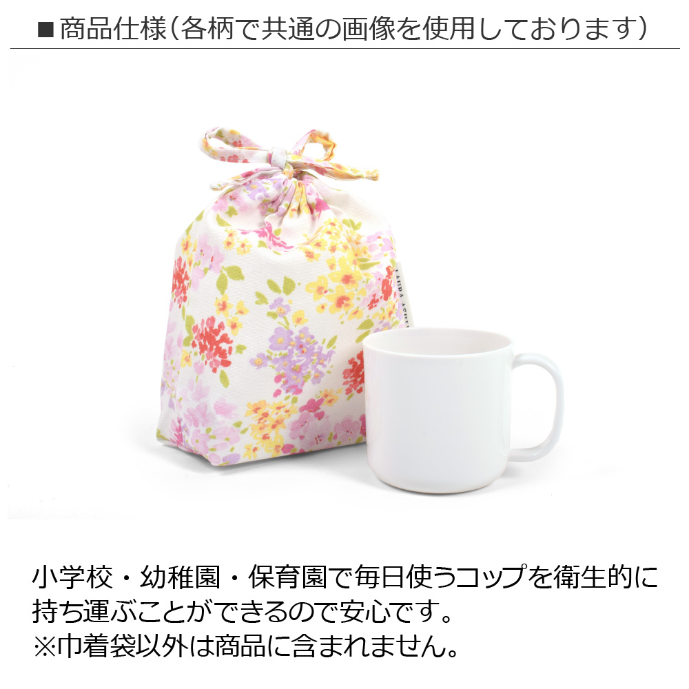 巾着本体とひもはお揃い柄を使用。さらに他のアイテムも同じ柄で揃えれば、自分のものだと分かりやすいので安心です。