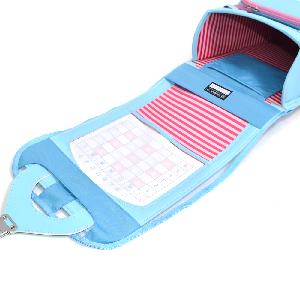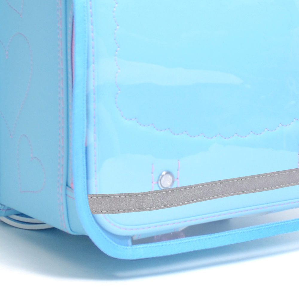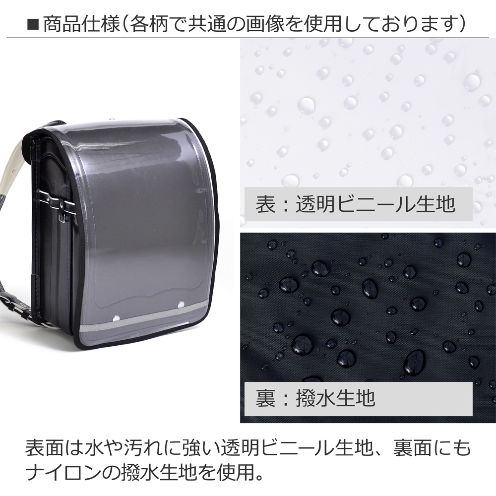 透明ビニール生地を採用しているので、ランドセルのデザインやディティールをそのまま見せてくれます。