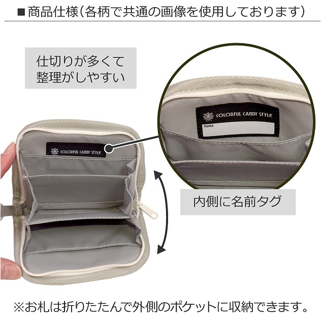 コイン入れが3か所、カードポケットが2か所付いて、収納力は見た目以上。お札も畳んで収納できます。