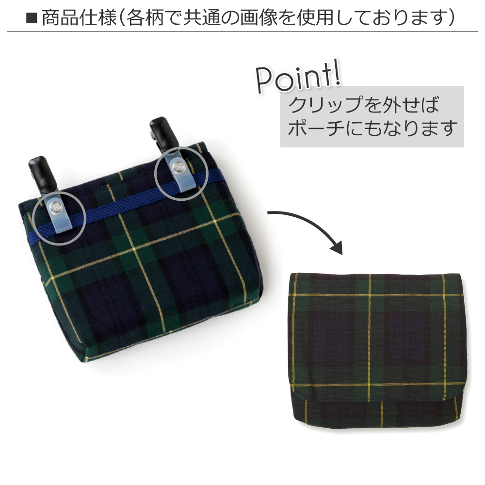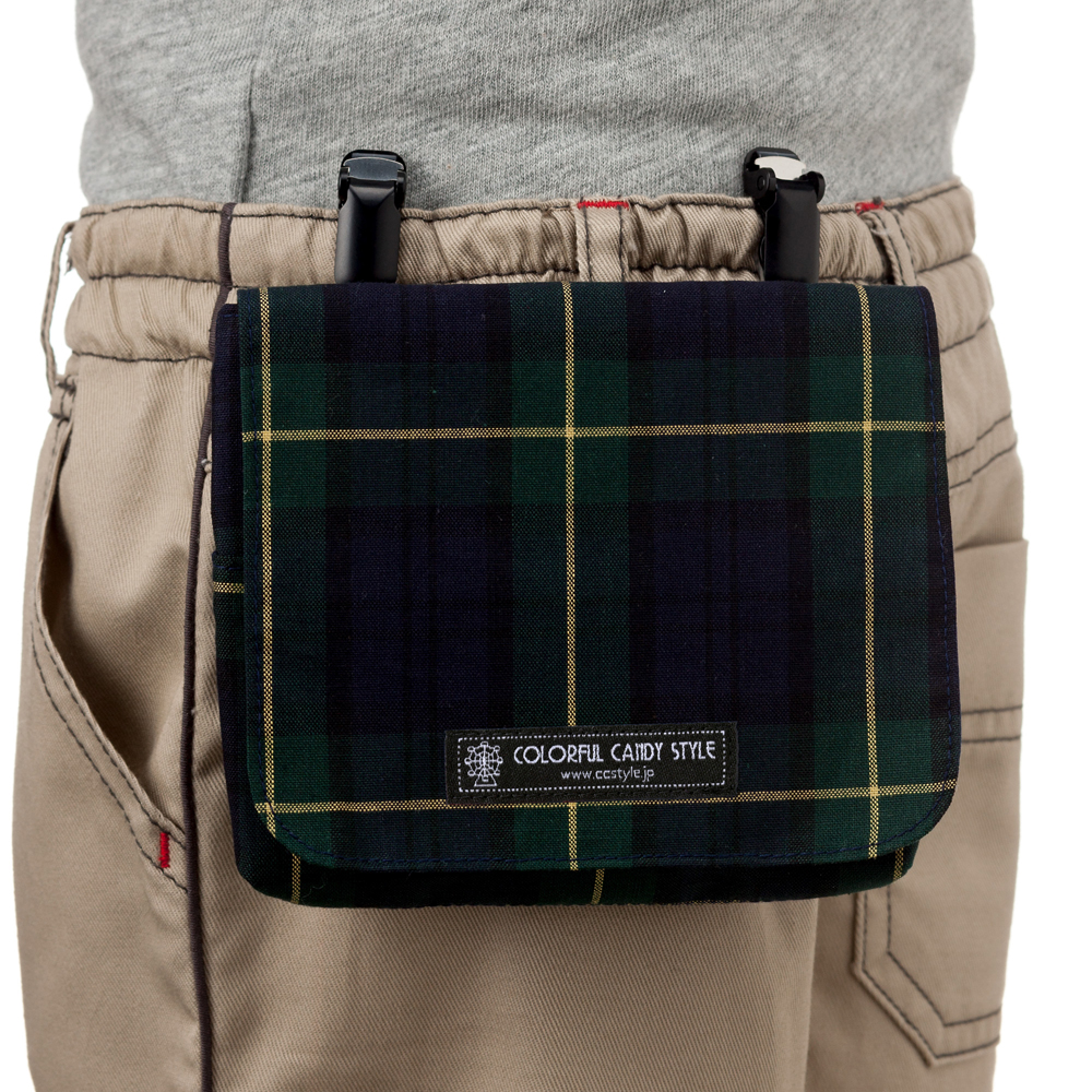 【ラージタイプ】移動ポケット・付けポケット タータンチェック・ダークグリーン
