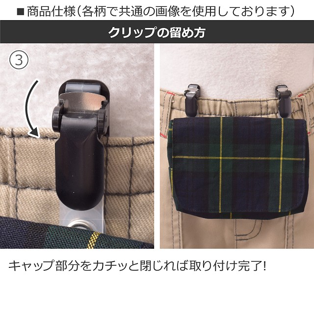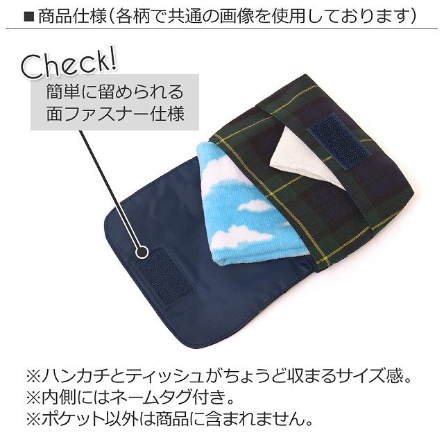 ハンカチ&ティッシュなど毎日の必需品を持つ習慣付けにもなります。クリップを外せばポーチとしても。