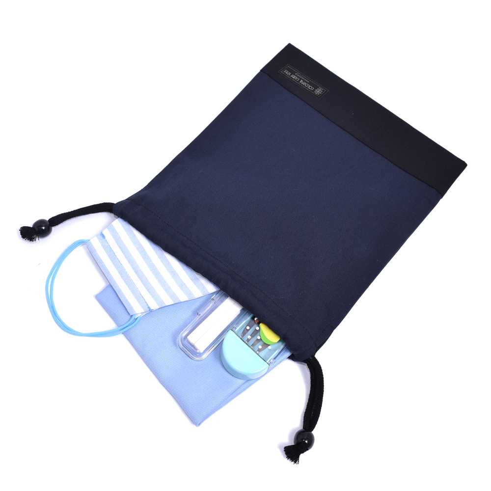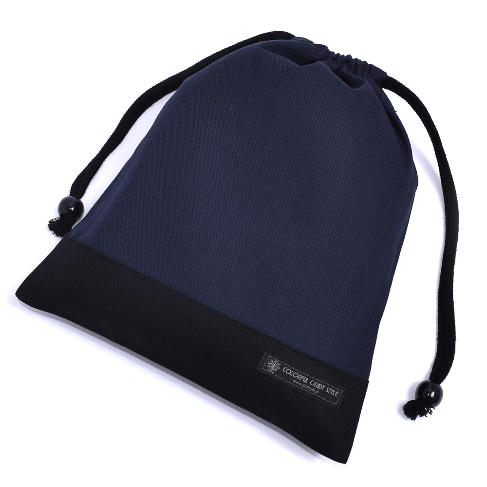 巾着 中 マチ無し給食袋(ネームタグ付き) ディープネイビー