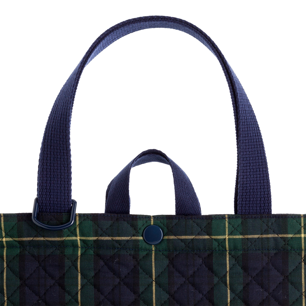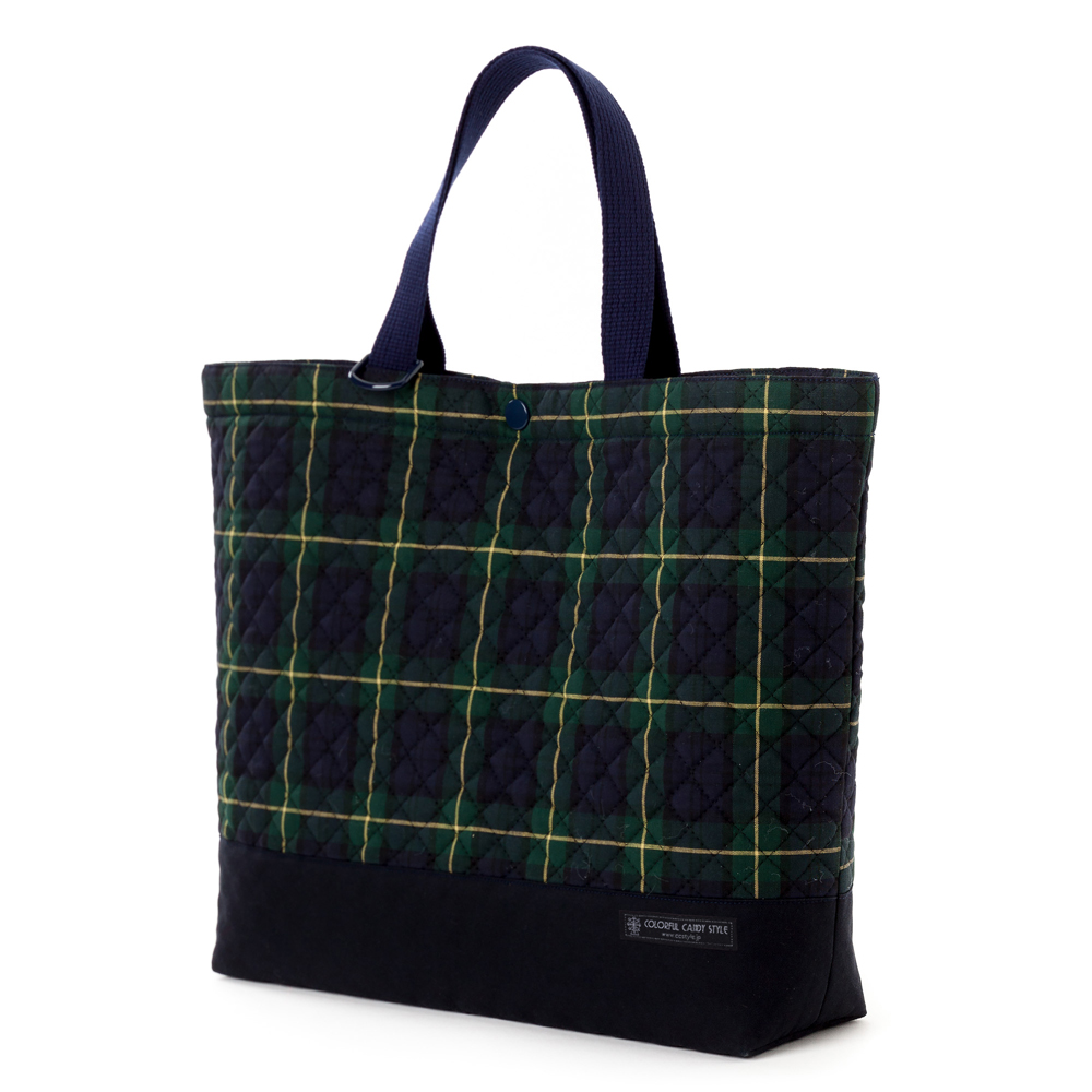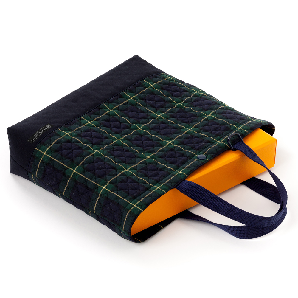 マチ付きキルティングレッスンバッグ(ループ付き) タータンチェック・ダークグリーン
