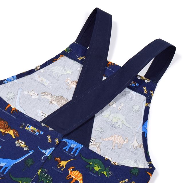 バッククロス子どもエプロン(100~120cm) 発見!探検!恐竜大陸(ネイビー)
