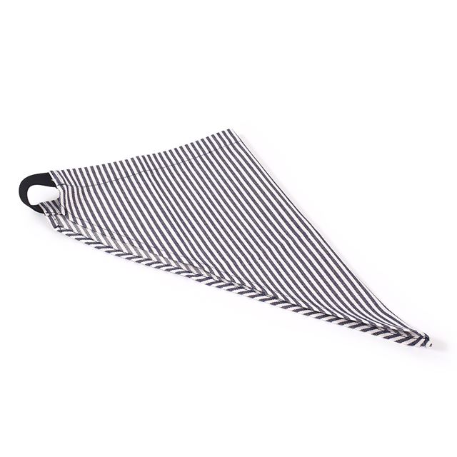 三角巾の後ろはずり落ちにくいゴム仕様。サイズが大きい場合は、ゴムを少し縫って調節して下さい。