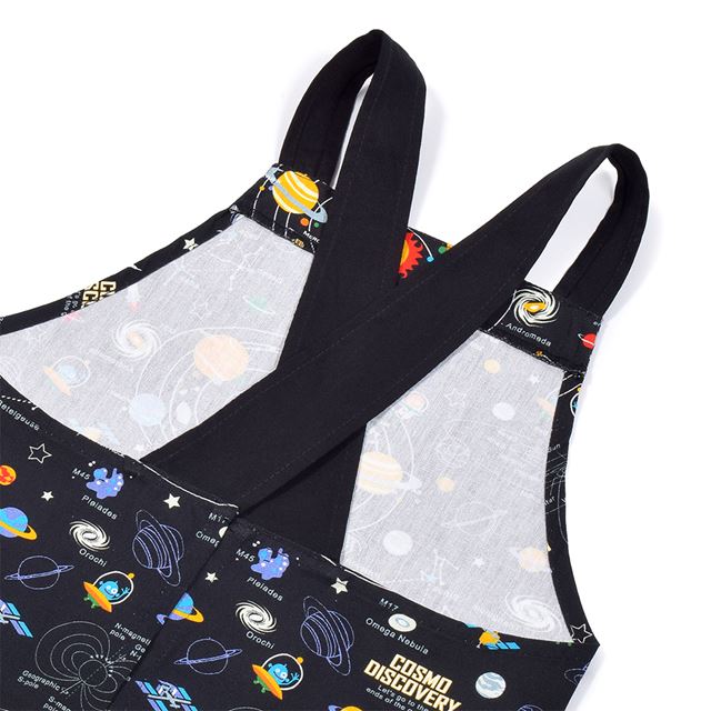 バッククロス子どもエプロン(100~120cm) 太陽系惑星とコスモプラネタリウム(ブラック)