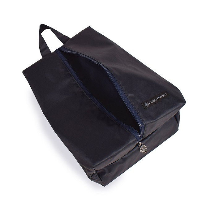 シューズケース はっ水ラミネートタイプ ファスナー付 無地ブロード・紺