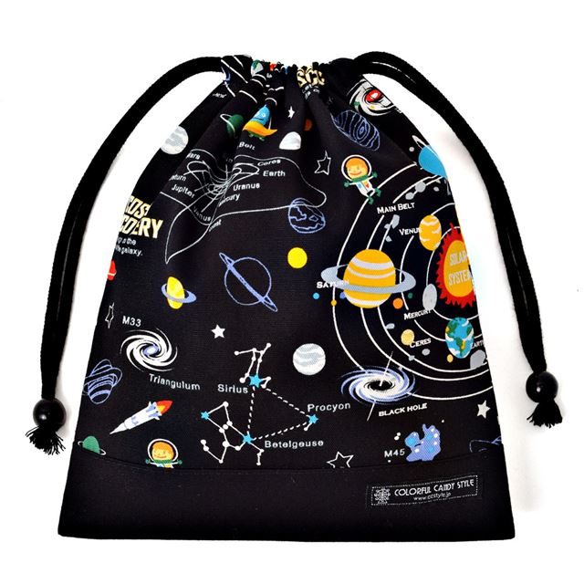 入園入学シリーズ 巾着3点セット 太陽系惑星とコスモプラネタリウム(ブラック)