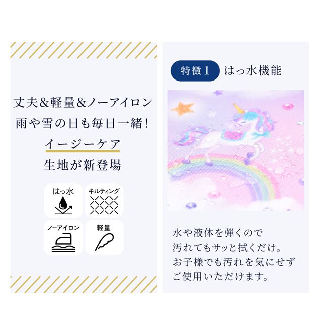 軽くて丈夫、そして水を弾くはっ水機能!通園通学・お出かけの新定番!すぐ乾く素材だから、学習も遊びも止まらない!