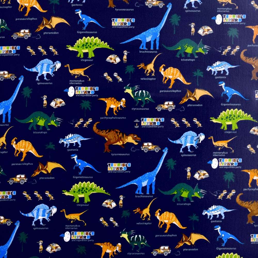 発見!探検!恐竜大陸(ネイビー) ラミネート(厚み0.2mm)生地