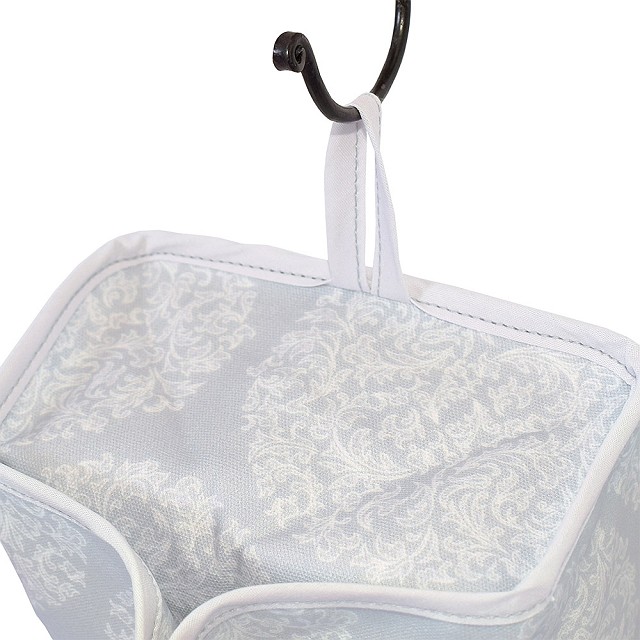 シンプルで使いやすさを追求したデザインは、上部2箇所のスナップで留めるだけでセットも簡単、サイドに付属しているループで壁などに掛けることもできます。