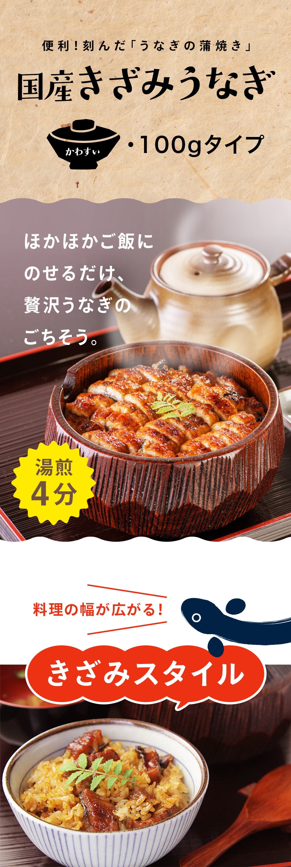・国産きざみうなぎ蒲焼き大盛り100g×5食