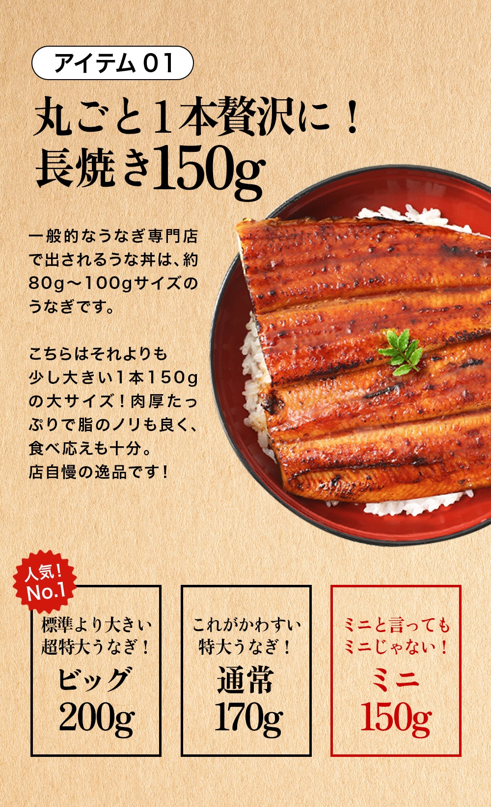 ・うなぎ蒲焼き 大サイズ150g×1本(たれ×2個)