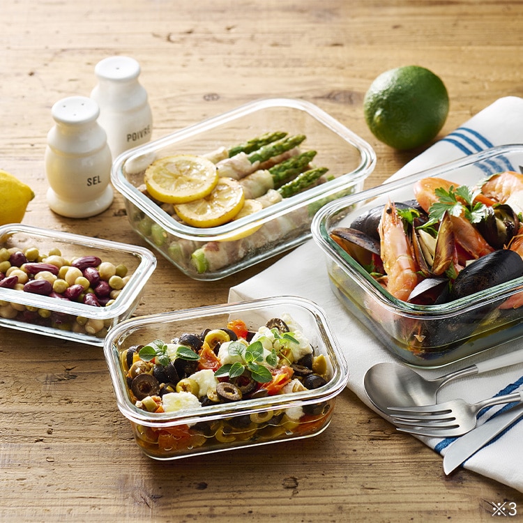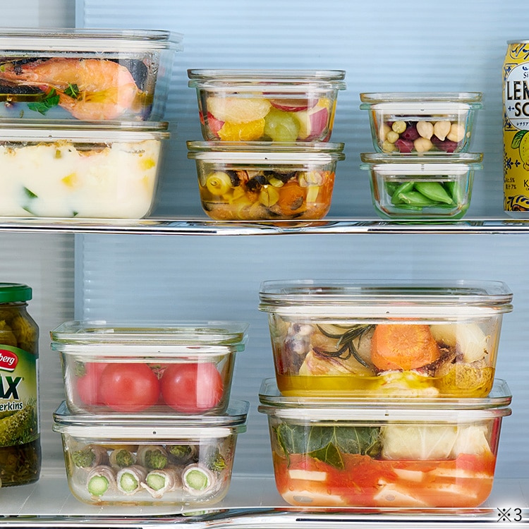 【商品説明】調理から保存までこれひとつ!レンジ、オーブン対応の耐熱ガラス容器です。ごはん一膳分にちょうど良いSサイズ。副菜の保存にも。そのまま食卓に出せるシンプルなデザイン。見た目が映えるだけでなく、洗い物も減らせます。サイズ違いの容器は重ねてコンパクトにお片付け可能。高さがすっきり揃うデザインになっています。見た目にも美しく、気持ちよく収納できます。フタには液ダレしにくいパッキン付き。350℃までの加熱調理が可能。(フタは外してください)電子レンジ・オーブンで使えるから、食材を入れてそのまま加熱OK!出来あがったらそのまま食卓へ。保存容器として冷蔵庫でも大活躍。中身が見えるので探しやすく、フタがあるので重ねることもできます。-18℃までの冷凍保存も可能です。ガラス製だから、油落ちが良くラクに洗えます。また、カレーなどを入れてもニオイが残りにくいのでいつでも清潔を保てます。容器は食洗機対応。(フタは食洗機には入れられません)【商品仕様】●商品サイズ(cm)S(370ml):幅約14.5×奥行約10.7×高さ約5.6●材質本体:ホウケイ酸ガラスフタ:ポリカーボネートパッキン:シリコーンゴム※フタは電子レンジ、オーブン、食洗機にはお使いいただけません