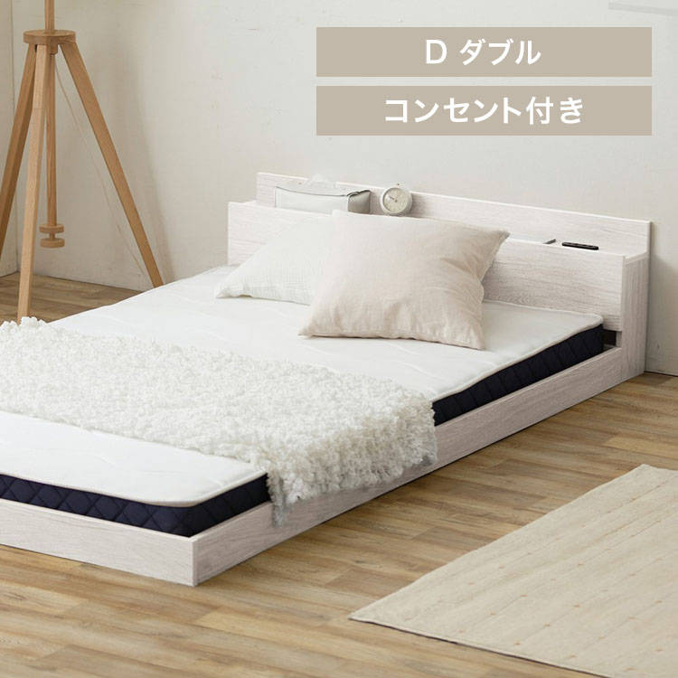 【商品説明】広めの棚付き、2口コンセント付きのすのこベッドです。お部屋を広く見せるロータイプで、開放的な空間に。使いやすい広めのヘッドボード。携帯の充電やスタンドライトにも便利な2口コンセント付きです。通気性の良いすのこタイプ。★お客様組立★【商品仕様】●商品サイズ(cm)ダブルサイズ幅約144×奥行約227×高さ約41●商品重量約30.5kg●耐荷重120kg●材質フレーム:合成樹脂化粧パーティクルボードすのこ:LVL(単板積層材)●お客様組立式※耐荷重は測定値であり、保証値ではありません。