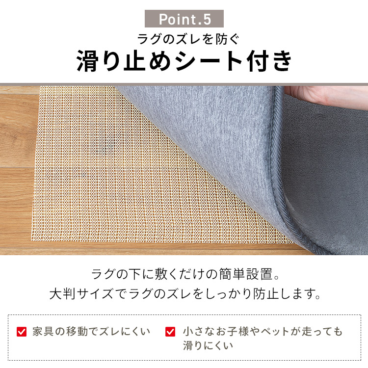 オールシーズン対応!季節に合わせて両面切替できるリバーシブルラグです。◆あったかマイクロムートン秋・冬「柔らかく、なめらか」ラグの表面には極細繊維マイクロファイバーを使用。ムートンのようななめらかで柔らかな肌ざわりを再現しました。◆ひんやり接触冷感春・夏「冷たく、さらり」ひんやり、さらっとした肌ざわり。夏のおうち時間を快適に過ごせます。◆極厚ウレタン約3cmの極厚ウレタンを使用。包み込まれる踏み心地。◆防音効果・撥水加工極厚ウレタンが音を吸収。防音効果で生活音を低減。お子さま、ペットに優しい両面撥水加工。※「防水」ではありませんので、使用状況により染み込むおそれがあります。早めにお拭き取りください。◆すべり止めシートラグのズレを防ぐすべり止めシート付き。ラグの下に敷くだけの簡単設置。●商品サイズ(cm)幅約185×奥行約240●質量約4.8kg(ラグ+すべり止めシート)●主要材質【組成】マイクロムートン面:ポリエステル100%接触冷感面:複合繊維54%(ナイロン・ポリエチレン)、ナイロン46%縁材:ポリプロピレン100%【中材】ウレタンフォーム【すべり止めシート】塩化ビニル樹脂※本製品は洗濯できません※アイロンは使用できません (検索用:ラグ・マット・リバーシブル・185×240・マイクロムートン・接触冷感・あったか・ひんやり・オールシーズン・極厚・春・夏・秋・冬・ホットカーペット対応・4967576610742・4967576610759・アイリスオーヤマ)