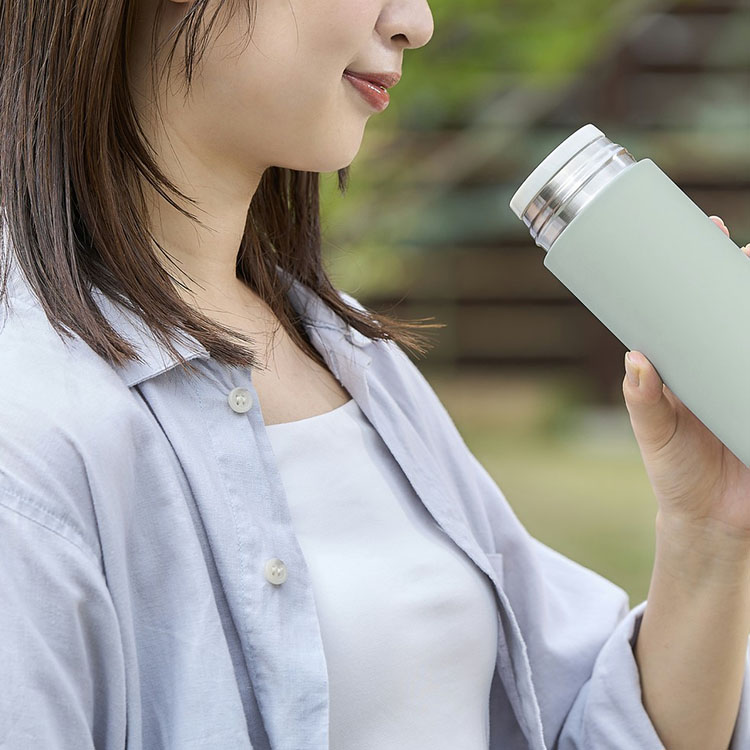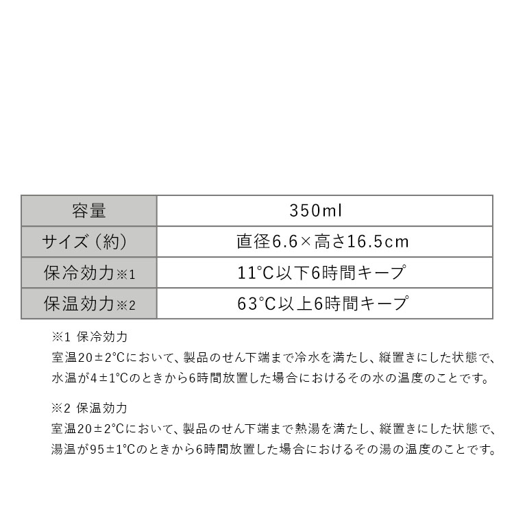 【商品説明】 ★スポーツドリンク対応★ くすみカラーのシンプルなステンレスマグボトルです。飲み口の口当たりを良くし、飲みやすい形状へ。飲みやすさがさらに向上しました。おいしい温度を6時間キープ可能。外びんと内びんの間の真空断熱層が温度をキープするので中の温度を逃がしにくく、外の熱を中に伝えにくい構造になっています。毎日使うアイテムだから、お手入れは簡単に。パーツを少なくして洗いやすく。しっかり洗えて衛生的です。シンプルデザインのやさしいくすみカラー。お出かけでもオフィスでも使う場所を選ばないデザインです。【商品仕様】●商品サイズ(cm)直径約6.6×高さ約15.23●質量約218g●実容量約0.35L●保温効力63度以上(6時間)●保冷効力11度以下(6時間)●材料の種類本体:ステンレス鋼(外側アクリル樹脂塗装)ふた:ポリプロピレン、ステンレス鋼飲み口:ポリプロピレンパッキン:シリコーン