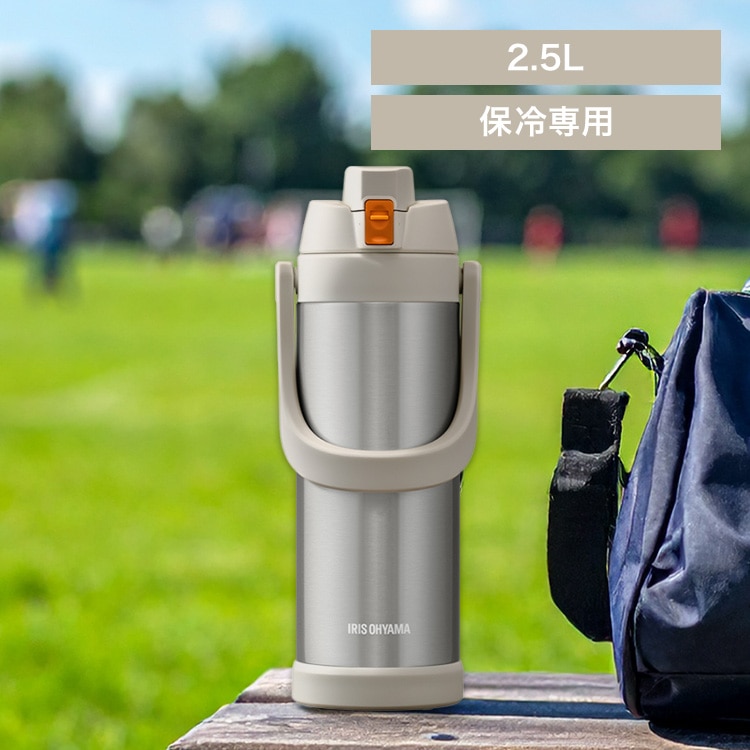 【商品説明】そのまま飲める直飲みタイプで、スポーツやアウトドアの水分補給に最適なスポーツジャグです。保冷専用です。真空断熱構造のため、冷たさを保ち、たっぷりの飲み物を保冷できます。スポーツドリンクに対応しています。ロックを解除し、ワンタッチオープンで簡単にふたを開けることができます。口径約80mmで、大きな氷もラクラク入ります。ハンドル付きで、持ち運びに便利です。【商品仕様】●商品サイズ(cm)幅約14.3×奥行約13.2×高さ約37.5●商品重量約1.05kg●実容量約2.5L●保冷効力9度以下(6時間)●口径約8cm●主要材質本体内側:ステンレス鋼本体外側:ステンレス鋼(外側:アクリル樹脂塗装)ハンドル:ポリプロピレンフタ:ABS樹脂せん:ポリプロピレンパッキン:シリコーン