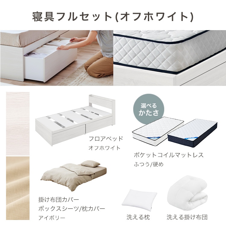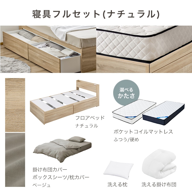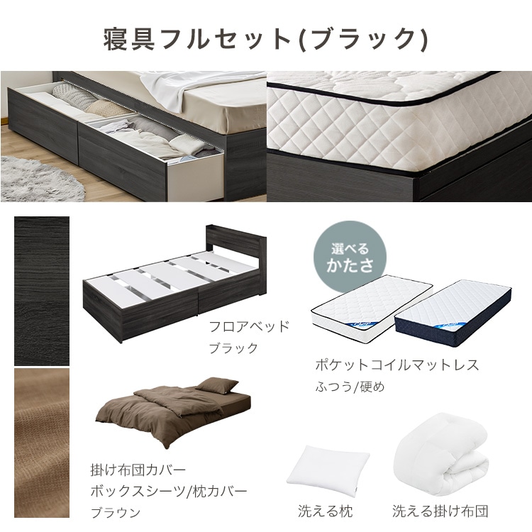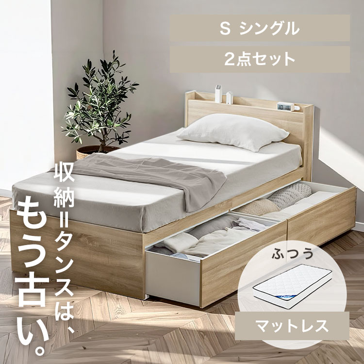 【ベッド・マットレスセット】シングル 大容量収納ベッド(DSBM)+20cmポケットコイルマットレス(硬さ:普通)
