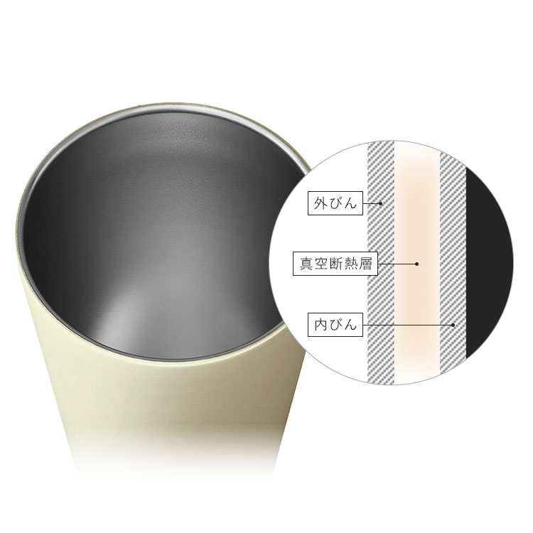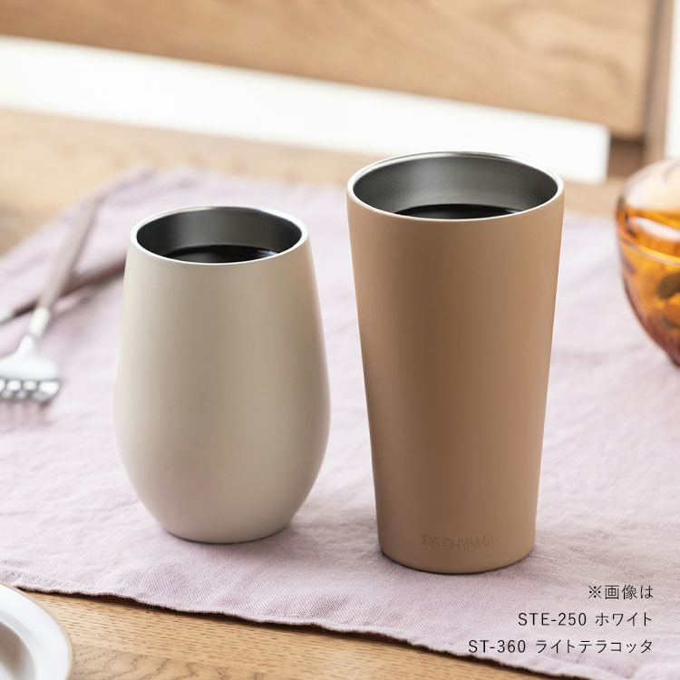 【商品説明】◆Ready to drink おいしい温度、楽しい時間「シンプルで、可愛くて、カトラリーに合うカップがあったらな」そんな思いから生まれたタンブラーシリーズ。コロンと丸みのあるかたち、優しいくすみカラーが楽しいひとときにそっと寄り添います。◆Ready to drink おいしい温度をキープコーヒーは温かく、ビールはキンキンに冷えたまま。その秘密はステンレス製真空二重断熱構造にあり。氷も溶けにくく飲み頃温度を保ちます。◆真空断熱構造だから冷たい飲み物は結露しにくく、温かい飲み物は外側が熱くなりにくい。飲み口は、丸みがあり優しい口当たり。【商品仕様】●商品サイズ(cm)直径約8.2×高さ約11.3●質量約126g●実容量約0.25L●保冷効力8℃以下(1時間)●材料の種類本体:ステンレス鋼外側:アクリル樹脂塗装●カラーブラック、ホワイト、ライトグレー、ライトテラコッタ※製品は予告なく仕様を変更する場合がございます。あらかじめご了承ください。