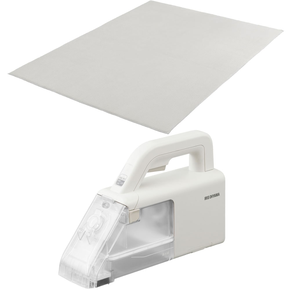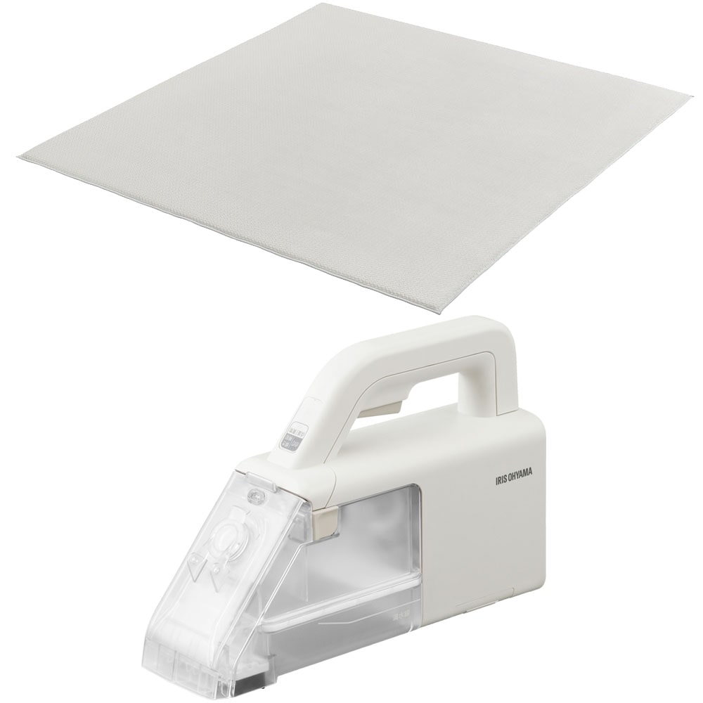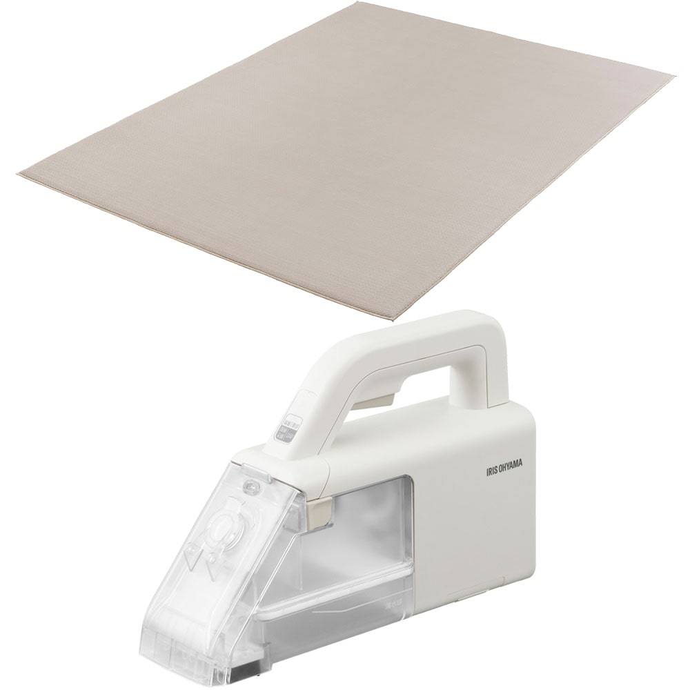 【商品説明】ラグとハンディリンサークリーナーのセット。[ラグ ラ・クッション ヘリンボーンベロア 185×185cm ACRHV-1818・185×240cm ACRHV-1824]もちっと新触感のラグ。≪ヘリンボーンベロア≫ヘリンボーン柄と優しいさわり心地。ふんわりなめらかな手ざわりのベロアと、立体的なヘリンボーン柄が生み出す陰影がお部屋を表情豊かに演出します。◆超極厚高反発ウレタン厚さ3cmと寝転がっても気持ちいい厚さのラグ。集合住宅の生活環境で、足音がほとんど聞こえないレベルの防音性能。極厚ウレタンが生活音を吸収して、騒音トラブルのおそれを低減します。◆すべり止め付き&丈夫なフチ強力滑り止め加工でフローリングに敷いてもラグがズレるのを防ぎます。また小さなお子様や、ペットが走っても滑りにくく安心。ラグのフチを縫製しているので、ほつれや破れが起きにくく長く愛用いただけます。◆安心の低ホルムアルデヒド製品ホルムアルデヒドの検査は、基準値を大きく下回る結果で合格。お子様や敏感肌の方にも安心してお使いいただける品質です。◆冬も快適、ホットカーペット・床暖房対応足元からポカポカ温め、歩いても座っても寝そべっても快適です。[ハンディリンサークリーナー 軽量 静音 コードレス RNS-B200D-HW グレー/ホワイト]片手で使えるハンディタイプのリンサークリーナーです。コードレスで軽量。お掃除のハードルがグッと下がります。近くに電源がなくても洗浄できるコードレスタイプ。車内や屋外でもサッとお掃除。あらゆる場所でお使いいただけます。バキュームホース付きなので、細かい場所や高い場所などのお掃除もできます。※この製品には水や洗浄液を吹きつける機能はありません。 市販のスプレーボトルなどを使用して、あらかじめ汚れに水や洗浄液を散布してください。 発泡性の高い洗剤は、クリーナー内部に泡が入りこみ故障するおそれがあるので使用しないでください。【商品仕様】[ラグ ラ・クッション ヘリンボーンベロア 185×185cm ACRHV-1818・185×240cm ACRHV-1824]●商品サイズ(cm)185×185cm:幅約185×奥行約185185×240cm:幅約185×奥行約240●質量185×185cm:約4.05kg185×240cm:約4.95kg●主要材質表地:ポリエステル100%裏地:ポリエステル100% 、すべり止め加工(塩化ビニル樹脂)縁材:ポリプロピレン100%中材:ウレタンフォーム●ウレタン厚約30mm●カラーグレーベージュ[ハンディリンサークリーナー 軽量 静音 コードレス RNS-B200D-HW グレー/ホワイト]●商品サイズ(cm)幅約8.8×奥行約32×高さ約20.5●商品質量約1.8kg(本体:約1.2kg)●充電電源入力:AC100V-240V、50/60Hz出力:DC13.7V、0.5A●定格電圧DC10.8V●回収タンク有効容量0.2L●充電時間約4時間(室温・使用時間などにより変化します)●充電温度5~35℃●連続使用時間約10分●バッテリーリチウムイオン2次電池●バッテリー容量1900mAh●付属品充電台、アタッチメントハンドツール、バキュームホース、充電アダプター