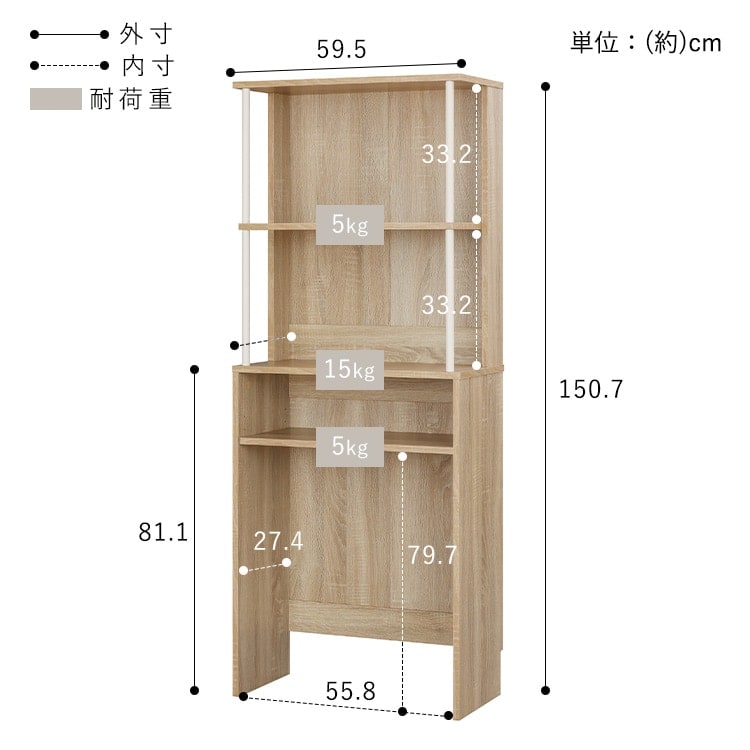 幅約59.5×奥行約29.5×高さ約150.7(本体外寸)