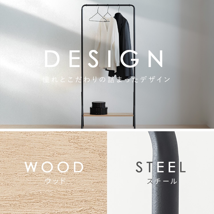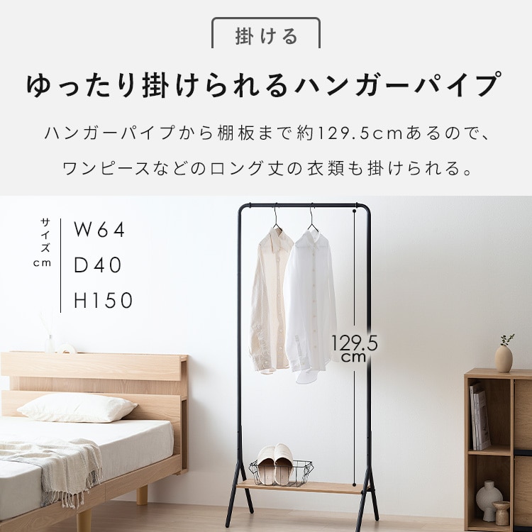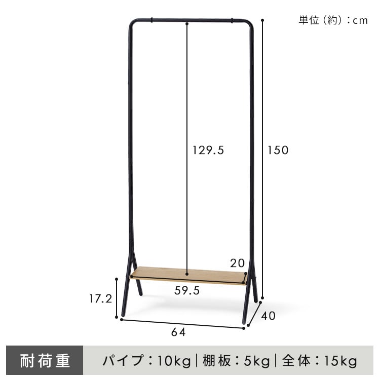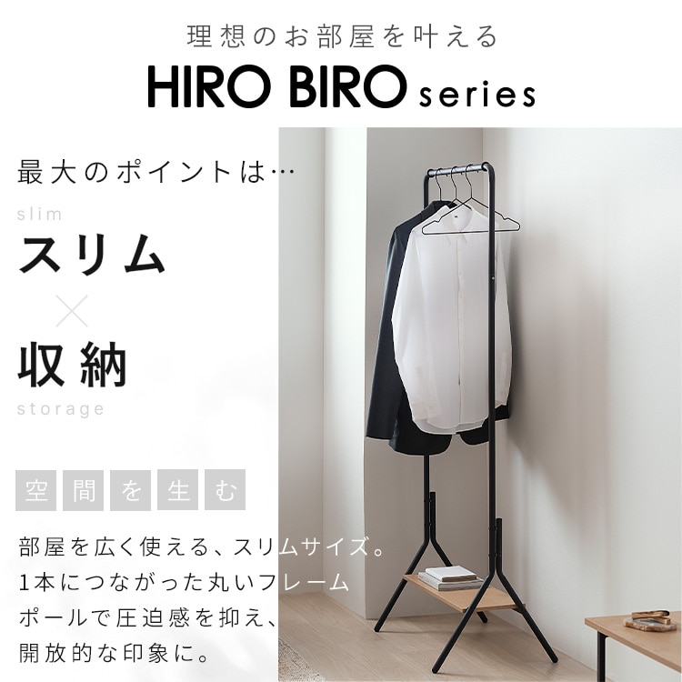 【商品説明】理想のお部屋を叶えるHIRO BIRO シリーズ最大のポイントはスリム×収納部屋を広く使える、スリムサイズ。1本につながった丸いフレームポールで圧迫感を抑え、開放的な印象に。ハンガーパイプには掛ける収納、棚板には置く収納、またはディスプレイ。どちらも実現したスタイリッシュなハンガーラック。木目調と黒で、引き締まった落ち着きのある印象に。★お客様組立★【商品仕様】●商品サイズ(cm)幅約64.0×奥行約40.0×高さ約150.0●耐荷重ハンガーパイプ:約10kg、棚板:約5kg、全体:15kg●主要材質木製部分:プリント紙化粧パーティクルボードパイプ部品:金属(鋼)(エポキシ樹脂塗装)●質量約3.1kg●必要工具+ドライバー(サイズ:2番)※インパクトドライバーと電動ドライバーは使用しないでください。※耐荷重は測定値であり、保証値ではありません。※商品の仕様は予告なく変更することがあります。