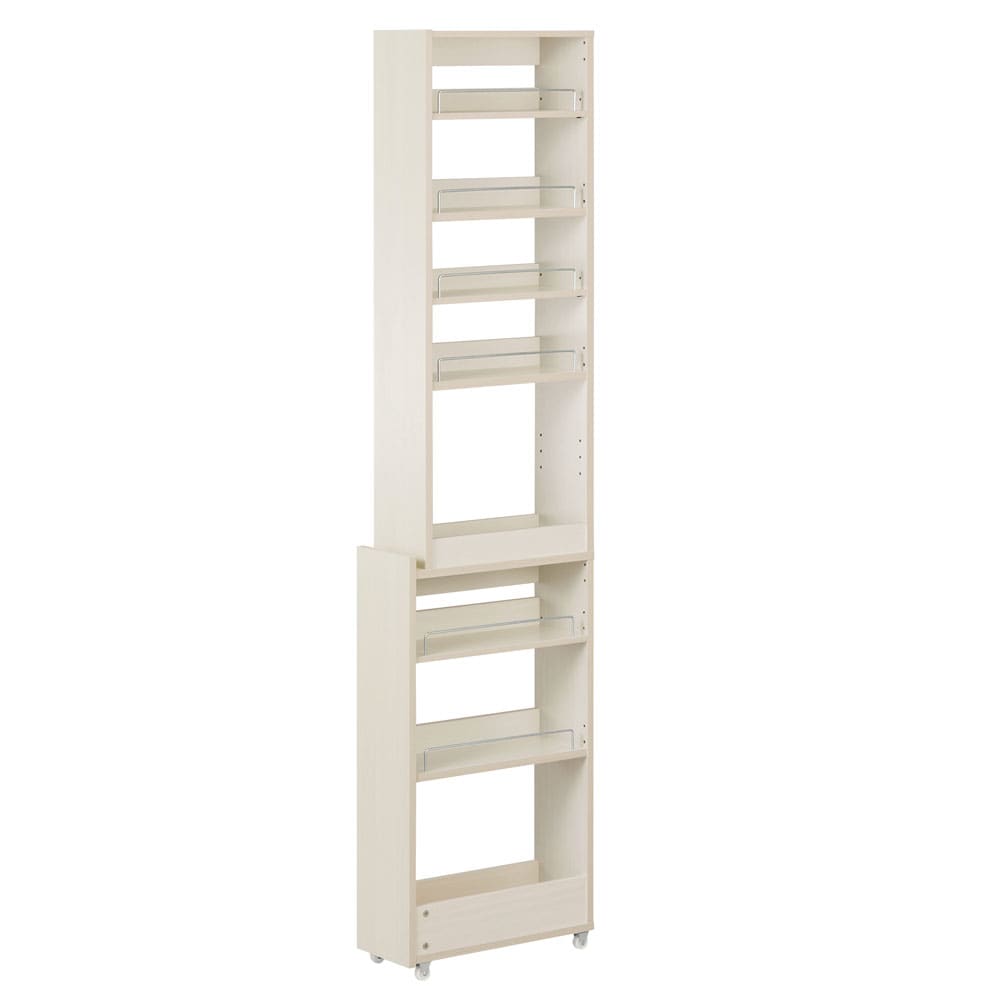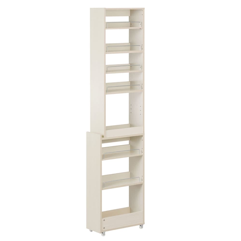 【商品説明】“幅10cm”以上の隙間があれば簡単に収納スペースが作れる、隙間収納ラック[ハイタイプ(幅:約16/18/20cm)]です。取っ手がラックと一体化したデザインなので見た目もスッキリしており、狭い場所でも邪魔になりません。キャスター付きで簡単に動かすことができるので、奥に入れた物も取り出しやすいです。高さが変えられる(2段階)可動棚付きなので、収納したい物に合わせて高さを調節できます。便利なボックス型収納が2か所あり、最下部に2Lのペットボトルも収納できます。消耗品のストックやデスク周りなど、キッチン以外にも空間・隙間の有効活用におすすめです。★お客様組立★【商品仕様】●商品サイズ(cm)16cm:幅約16×奥行約44.5×高さ約18118cm:幅約18×奥行約44.5×高さ約18120cm:幅約19.8×奥行約44.5×高さ約181●商品質量16cm:約14.3kg18cm:約15.7kg20cm:約16.9kg●耐荷重全体:約30kg固定棚:約5kg可動棚:約3kg底板:約8kg※耐荷重は測定値であり、保証値ではありません。●主要材質木製部分:プリント紙化粧パーティクルボード、合成樹脂化粧パーティクルボード(メラミン樹脂)金属部分:金属(鋼/ユニクロメッキ)●必要工具・プラスドライバー(サイズ:2番)・電動ドライバー使用可※インパクトドライバーは使用しないでください。※2人での組み立てをおすすめします。