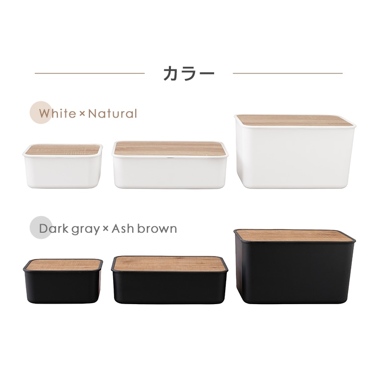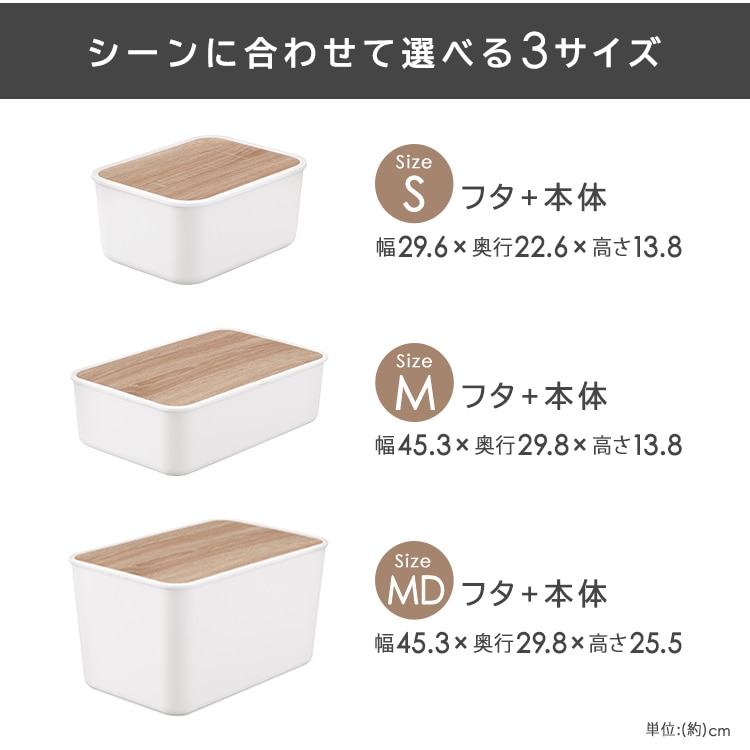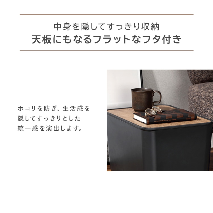 【商品説明】すっきり隠してオシャレに収納。木目調デザインのフタがアクセントにシンプルで使いやすい収納ケース。◆あたたかみのあるシンプルなデザインナチュラルな木目調でお部屋に合わせやすく使いやすい。◆中身を隠してすっきり収納、天板にもなるフラットなフタ付きホコリを防ぎ天板にもなるフラットなフタ。生活感を隠してすっきりとした統一感を演出します。フタには水に強いPVCシートを使用。汚れてもサッと拭き取ることができ、洗面所などの水回りでも活躍できます。フタの裏側にツメがついているので、ズレることなくピッタリと本体にはまります。積み重ねは最大2個まで可能です。使用頻度の高い日用品もすっきりまとめて収納。シーンに合わせて選べる3サイズ×2カラー。アイリスオーヤマのメタルラックにぴったりのサイズ。【商品仕様】●商品サイズ(cm)外寸:幅約45.3×奥行約29.8×高さ約13.8内寸:幅約43×奥行約27×高さ約11.3●重量約860g●材質ポリプロピレン、合成樹脂化粧繊維板(塩化ビニル樹脂)、ポリエチレン●カラーホワイト、ダークグレー