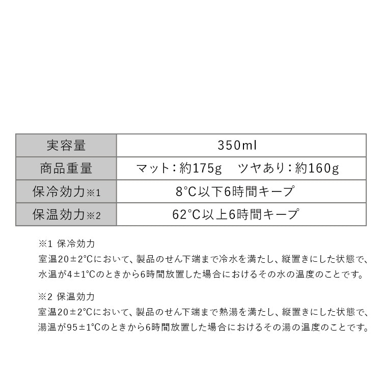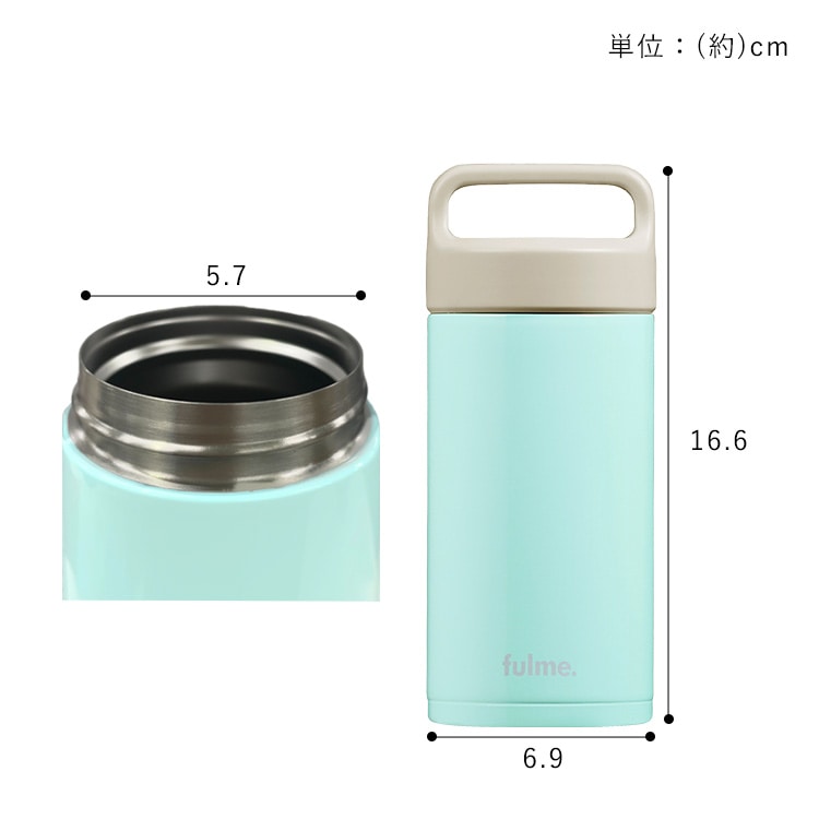 【商品説明】 ★スポーツドリンク対応★ 「fulme.(フルミー)」持ち歩きに便利なハンドル付きのマグボトル。スタイリッシュなカラーのラインナップ。ハンドル付きで、お子様にもおすすめです。飲み口上部に厚みを持たせることで、なめらかな口当たりに。マグのような自然な飲み心地です。保温性の高いステンレス鋼を使用し、さらにマグボトル内部の真空断熱層が温度をキープするので飲み頃をキープします。パーツが少ないのでお手入れもラクラクです。【商品仕様】●商品サイズ(cm)Φ6.9×高さ約16.6飲み口内径:Φ5.68●商品重量ブラック、ホワイト、マゼンタ:約175g(マット)グロッシーブルー、グロッシーピンク、グロッシーネイビー:約160g(ツヤ)●実容量約350mL●保温効力62℃以上(6時間)●保冷効力8℃以下(6時間)●主要材質本体:ステンレス鋼(外側 アクリル樹脂塗装)ふた:ポリプロピレンパッキン:シリコーン●カラーブラック、グロッシーブルー、グロッシーピンク、ホワイト、グロッシーネイビー、マゼンタ