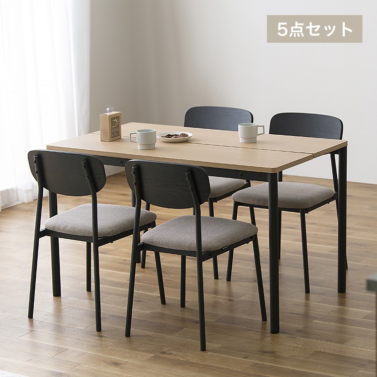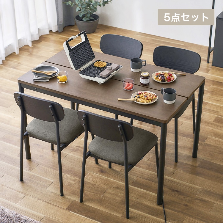 使いやすいサイズのダイニングテーブルセットです。◆テーブル十分なスペースを保ちつつ、空間に圧迫感を感じさせない、置きやすいサイズ感。天板下にコンセントトレイ付き。さらに配線留めが付属。配線をまとめて、足元すっきり。フラットタイプのメラミン天板。傷つきにくいので、お仕事やお子様のお勉強にも◎◆チェア座面にウレタンクッションを使用。温かみのあるファブリック生地採用でオールシーズン快適。背もたれはカーブがかかっていて背中にフィットします。★お客様組立★