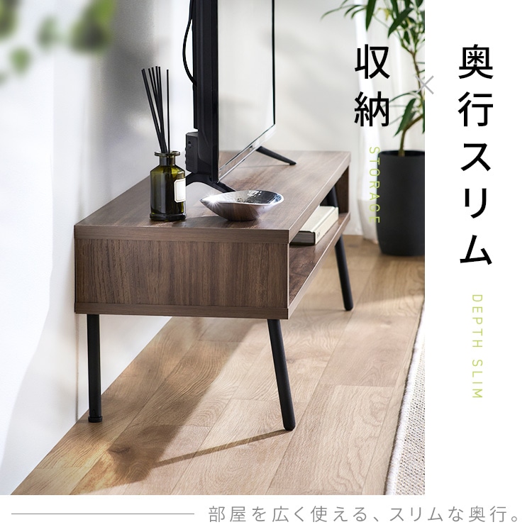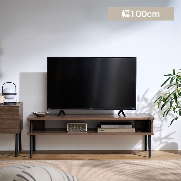 【商品説明】【スペパシリーズ】スリムでコンパクトな家具・家電だからスペースパフォーマンスが高い!理想のお部屋を叶えるHIRO BIRO シリーズ最大のポイントは…奥行スリム×収納◆40Vまで置けるスマートデザインオープンスタイルで、AV機器やゲーム機使用時の熱を逃がせる。背板がないから、コード類をまとめやすい。棚板にはゲーム機やDVDプレイヤー、リモコンなどを収納できる。棚板下はちょっとした小物をを置けるスペースに。◆圧迫感を感じさせないロースタイルごろ寝でも見やすい高さ。足を伸ばしてゆったり過ごしながら、映画鑑賞などを楽しむことができる。◆さまざまなシーンで使えるテレビ台としてだけではなく、サイドテーブルや、リビングボードのような使い方も。すぐに手が届く高さで、片付けのストレスなし。◆憧れとこだわりの詰まったデザイン木目調と黒で、引き締まった落ち着きのある印象に。★お客様組立★【商品仕様】●商品サイズ(cm)幅約100.0×奥行約33.9×高さ約32.0●質量8.1kg●耐荷重天板:約20kg底板:約10kg全体:約30kg※耐荷重は測定値であり、保証値ではありません。●主要材質木製部分:プリント紙化粧パーティクルボード脚部分:金属(鋼)(エポキシ粉体塗装)●必要工具+ドライバー(サイズ:2番)電動ドライバー使用可能。※インパクトドライバーは使用しないでください。※2人での組み立てをおすすめします。