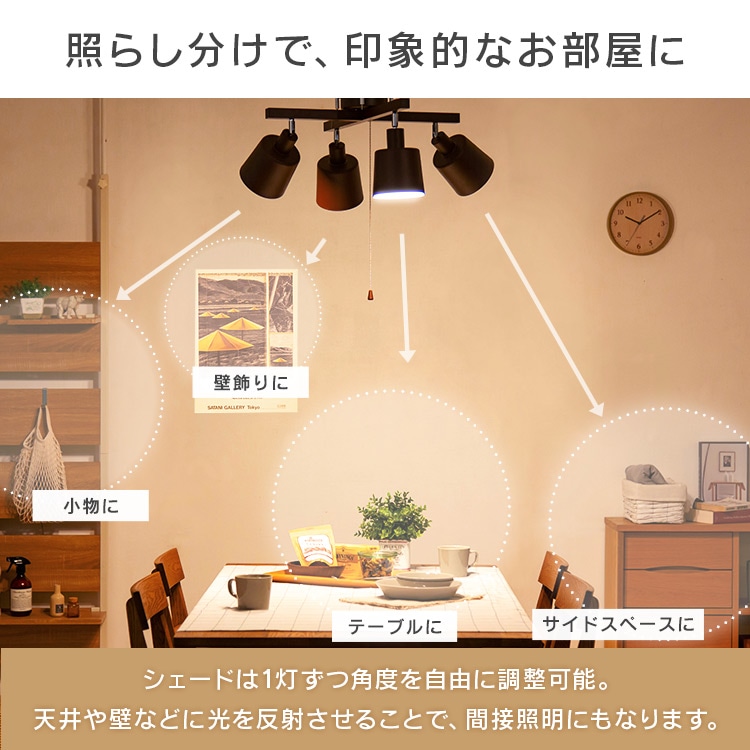天井や壁などに光を反射させることで、間接照明にもなります。