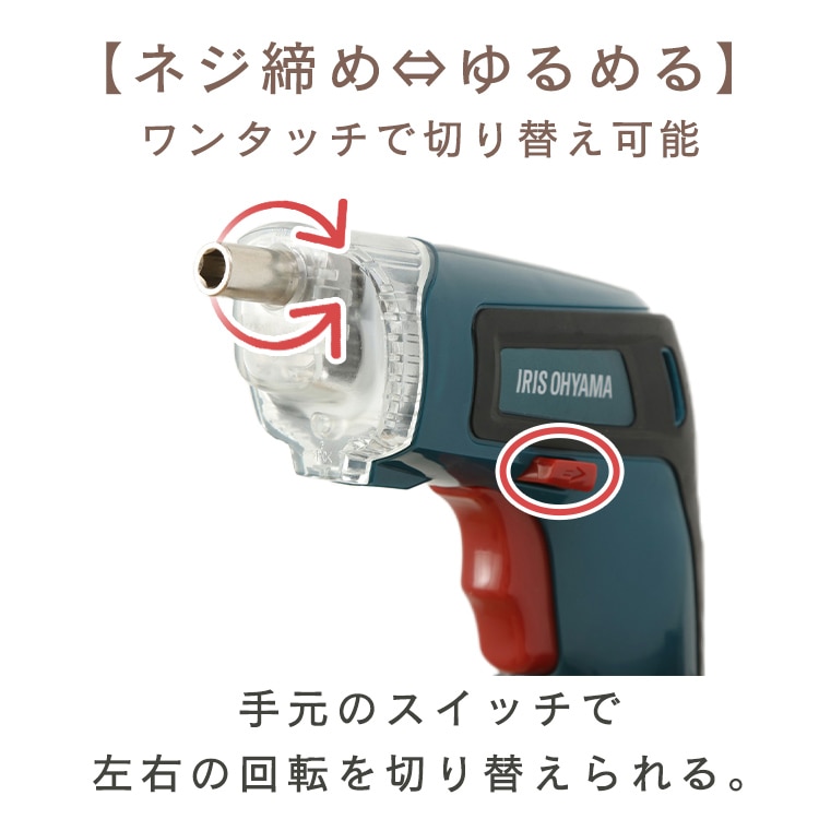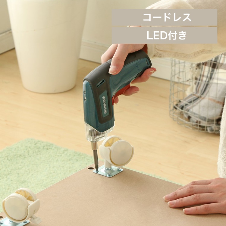 【商品説明】サッと使える充電式。LEDライト付き電動ドライバーセット。コンパクトなデザインで、1台あると便利な充電式電動ドライバー。。組み立て家具や、お部屋のちょっとした模様替えに便利。LEDライト付きだから薄暗い場所での作業もラクラク。連続使用時間が60分なので、電池長持ち。Micro USB端子からの充電も可能◎電動ドライバーを使ったことのない方も、安心・簡単にご使用いただけます。【商品仕様】●商品サイズ(cm):幅約13×奥行約4.5×高さ約12●重量(g):約380●電圧:DC3.6V●無負荷回転数:200rpm●最大締付トルク:3.5N.m.●使用可能時間:約60分●バッテリー:リチウムイオン二次電池●バッテリー容量:1500mAh●バッテリー寿命:約250回●ビットチャック:HEX6.35mm(六角軸)●充電アダプター [入力]AC100~240v 50/60Hz 0.4A [出力]DC5V 0.5A 2.5Wmax●充電時間:約3~5時間●USBケーブル長:約1m●使用温度範囲:約10~40度●付属品・ACアダプタ(USB)・USDケーブル 1m・取扱い説明書◆ビット 10本 (ビットホルダ込) 長50mm 六角 H4 長50mm 六角 H5 長50mm 六角 H6 長50mm + PH2 長50mm - 5 長25mm + PH1 長25mm + PH2 長25mm + PH3 長25mm - 5 長25mm - 4