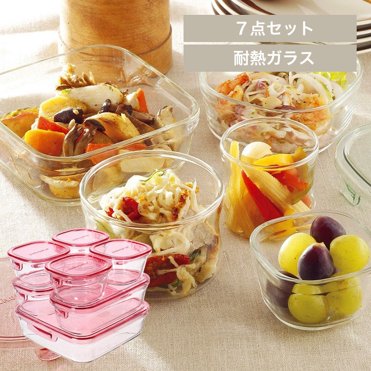 【商品説明】冷蔵庫から取り出して、そのままレンジへ。中身が見えるから使い忘れることもなく、上手に保存して手早くクッキング!フタをはずせばオーブンにも使用可能です。【商品仕様】●セット内容200ml×4個、500ml×2個、1.2L×1個●サイズ(cm)200ml:幅約9.3×奥行約9.2×高さ約5.4500ml:幅約18.6×奥行約9.3×高さ約5.51.2L:幅約18.5×奥行約18.5×高さ約5.5●本体重量200ml:約160g500ml:約330g1.2L:約650g●材質本体:耐熱ガラス、蓋:ポリカーボネイト●機能電子レンジ、オーブン、食洗機使用可 (フタはオーブン・食洗機使用不可)