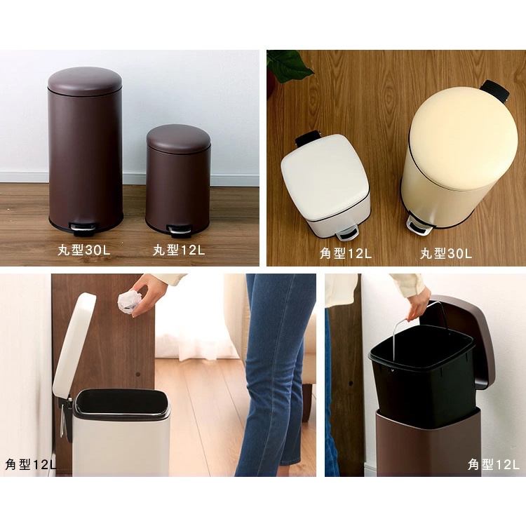 【商品説明】スタイリッシュなデザインのゴミ箱です。両手がふさがっていても脚だけでラクに開閉できます。キッチンや掃除、ペット用ゴミ箱としても大活躍。ふた付きなので中が見えず、においも漏れません。ガスダンパー機能でフタがゆっくり静かに閉まります。中容器は取り外して丸洗いできるのでいつでも清潔です。持ち運びできる取っ手付き。【商品仕様】●容量12L●商品サイズ(cm)本体:幅約30.5×奥行約24.5×高さ約41インナーボックス:幅約23.5×奥行約23.5×高さ約33.5●商品重量約2.2kg●材質本体・ふた:スチールインナーボックス・ペダル:PP