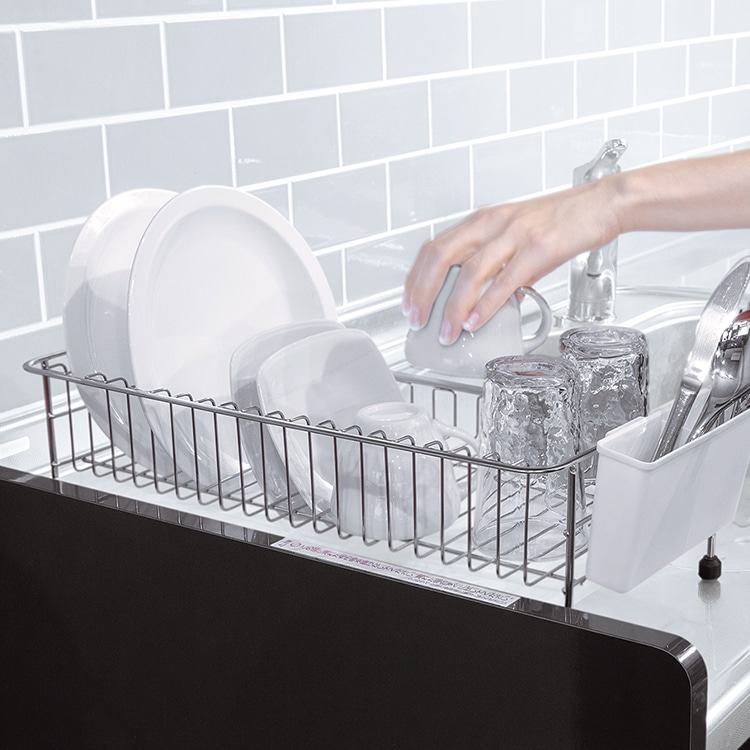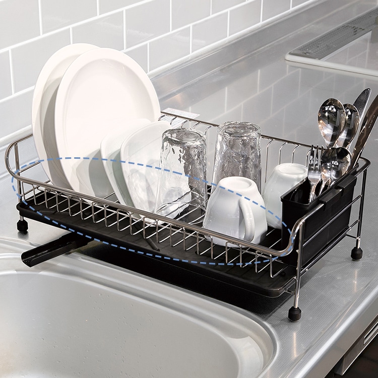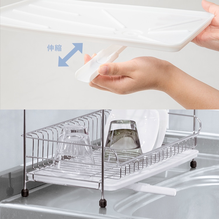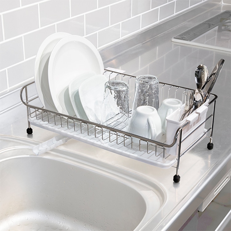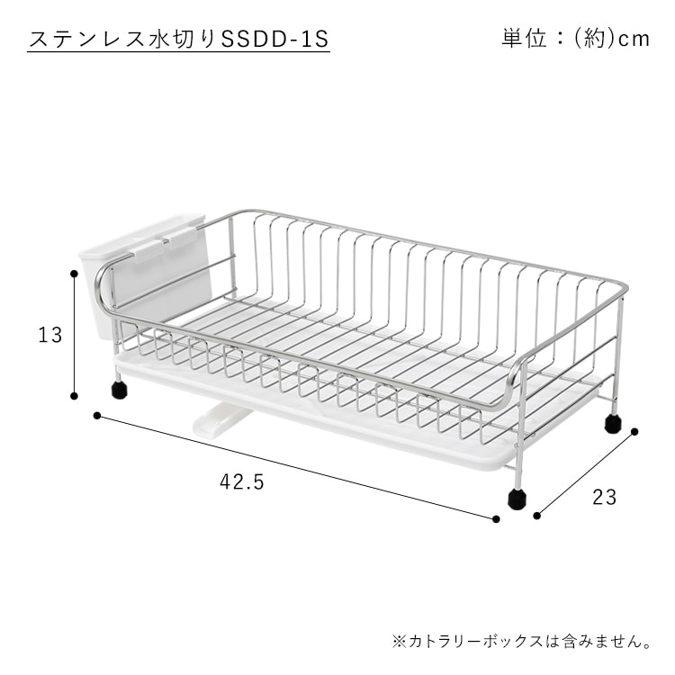 【商品説明】キッチンに自然と溶け込むデザインとステンレスの清潔感が、水切りの使い勝手を向上させます。◆水受けのノズルは伸縮式!◆水受けは排水がスムーズでいつでも清潔!◆脚ゴム付きでスベリ防止と安全性アップ!カトラリーボックスの底面は網目になっているので、水が溜まらずいつも清潔!【商品仕様】●商品サイズ(cm)幅約42.5×奥行約23×高さ約13●商品重量約0.76kg●材質本体:ステンレス、ゴム脚:シリコン●機能排水ノズル360°回転●カラーブラック(BK)ホワイト(WT)