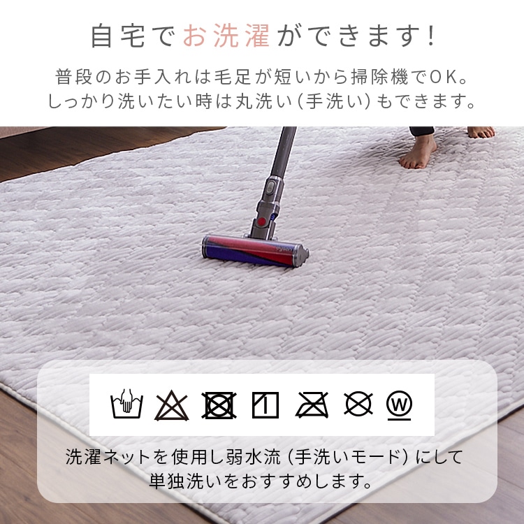 【商品説明】ふんわり滑らかな触り心地で気持ちいいボリューム感のラグ。ダイヤモンド模様のかわいいキルティング。おうちで洗えていつでも清潔。【商品仕様】●商品サイズ(cm)幅約190×奥行約240●商品重量約3.02kg●材質表地:ポリエステル100%(フランネル)裏地:ポリエステル100%+滑り止め加工中綿:ポリエステル100%(わた/抗菌防臭防ダニ加工)+ウレタン●カラーグレージュアイボリースモーキーラベンダースモーキーイエロースモーキーグリーン