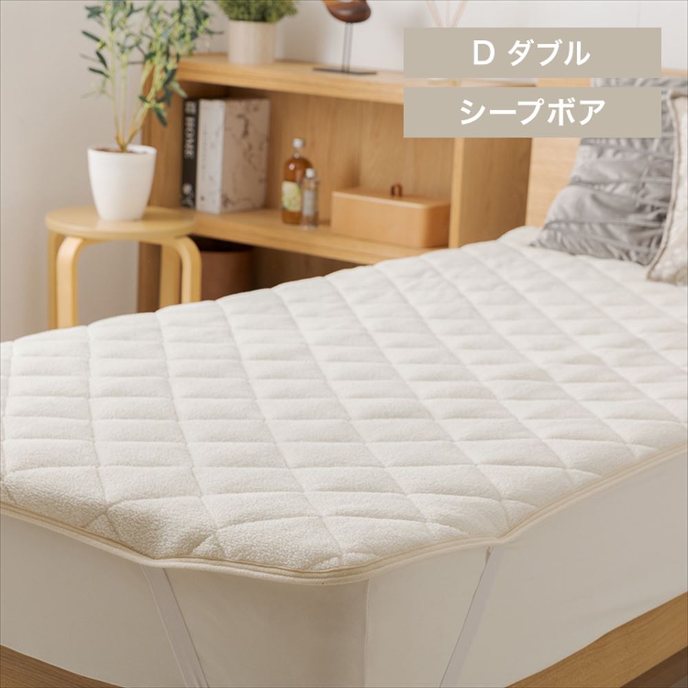 【商品説明】ふんわりあったかシープタッチの敷パッド。布団に入った瞬間もこもこあったか!丸洗いできるので清潔安心です。【商品仕様】【シングルサイズ】●商品サイズ(約):100×205cm●商品重量:約0.7kg●充填量:約0.2kg●材質表地:ポリエステル100%裏地:ポリエステル100%中綿:ポリエステル100%【セミダブルサイズ】●商品サイズ:幅約120×奥行約205●商品重量:約0.85kg●材質表地/毛羽部分:ポリエステル100%(シープ調ボア) グランド部分:ポリエステル100%裏地:ポリエステル100%中綿:ポリエステル100% 中綿重量:0.24kg【ダブルサイズ】●商品サイズ(約):140×205cm●商品重量:約1.0kg●充填量:約0.28kg●材質表地:ポリエステル100%裏地:ポリエステル100%中綿:ポリエステル100%●お手入れ方法お洗濯の際は10kg以上用の洗濯機を使用するか、手洗いを行ってください。多少の色落ちや毛羽落ちが考えられ ますので単独にてお洗いください。●生産国:中国