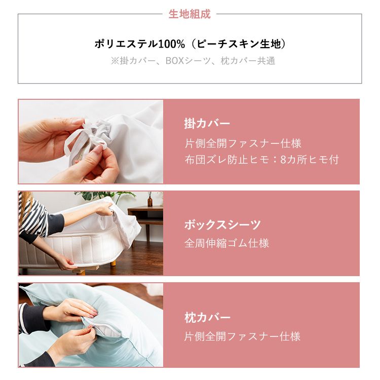 掛け布団カバー×1、BOXシーツ×1、枕カバー×2