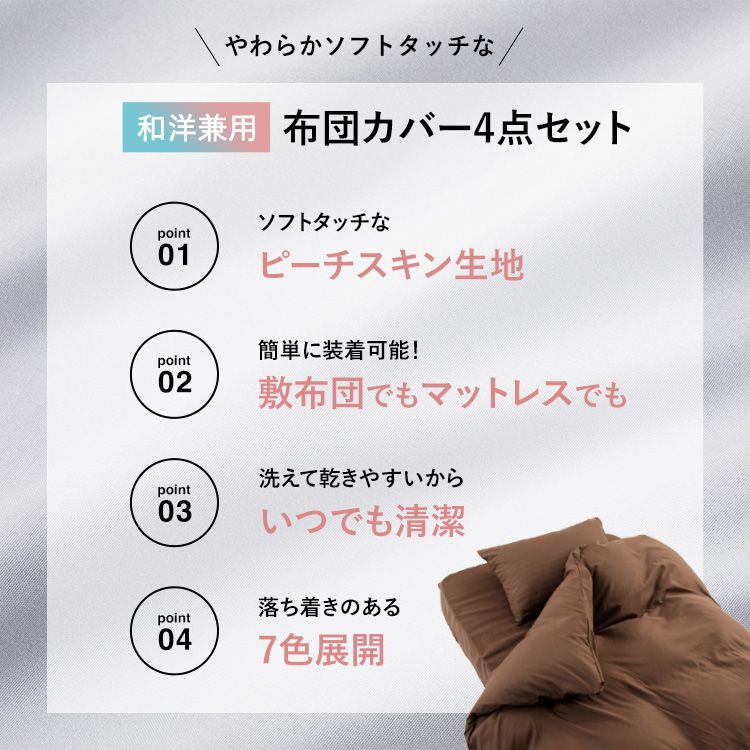 選べる7色展開の洋式和式兼用布団カバー4点セット。