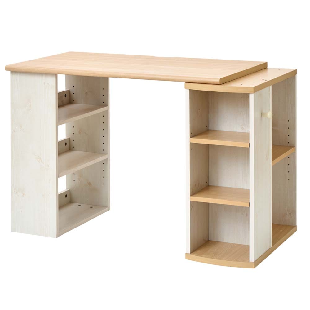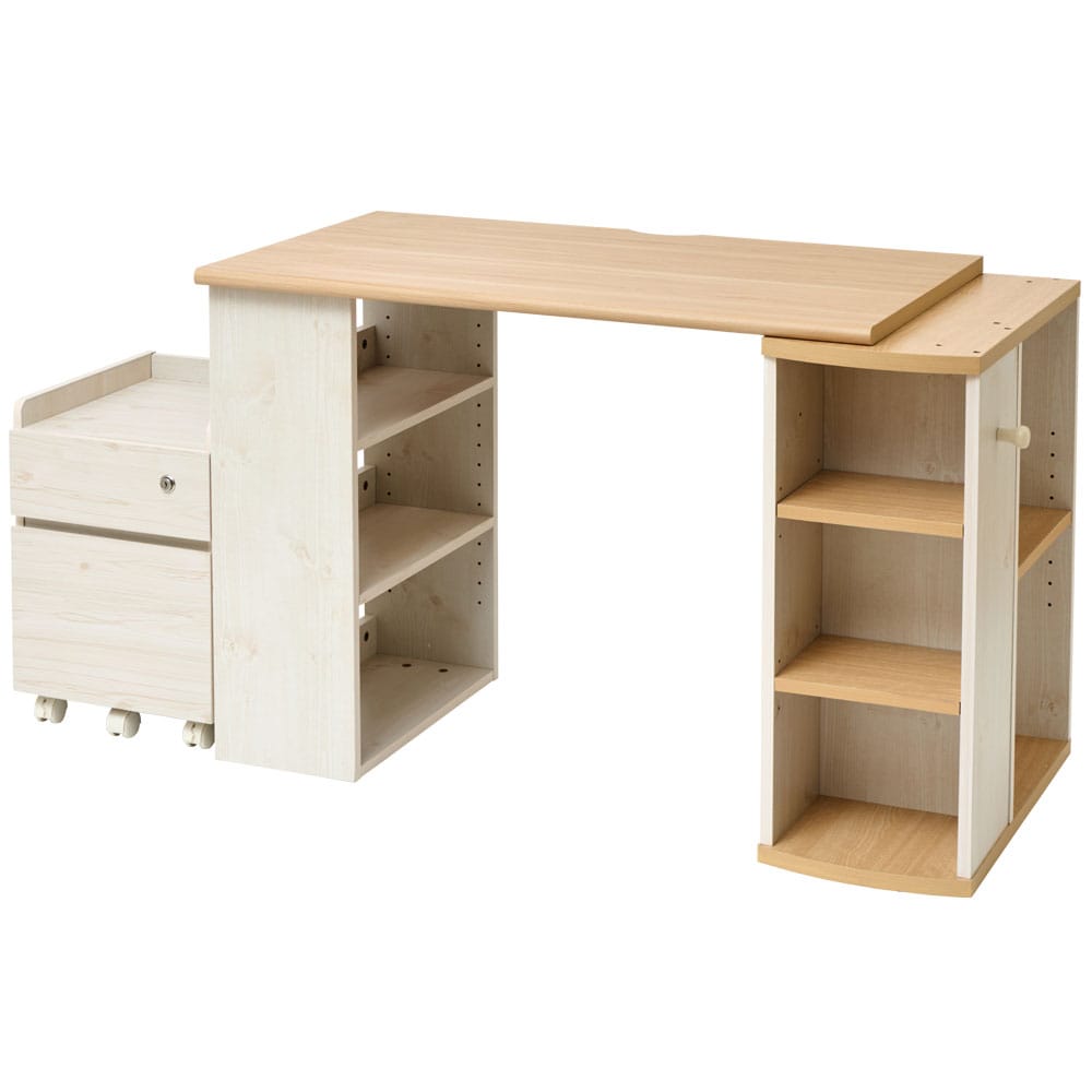 【商品説明】コンパクトデスクのみ、またはコンパクトデスク+キャビネットのセットを選べます。◇コンパクトデスク2種類のラックに、教科書や文房具などをお片付けできる収納付きデスクです。教科書やノートを広げても手狭にならない、ひろびろ天板。天板は傷や汚れに強い塩ビ化粧繊維板を採用しているので、お手入れ簡単です。コード穴があるのでデスク周辺もすっきり、壁にピッタリ設置できます。大人になっても使える、シンプルで飽きのこないデザインです。◇キャビネット1段目は鍵付きの使い勝手の良いキャビネットです。収納するものによって使い分けられる2段の引き出し、厚手の天板はランドセルも余裕で置けるサイズです。キャスター付きなので、移動やお掃除もラクラク。★お客様組立★【商品仕様】◇コンパクトデスク●商品サイズ(cm)幅約114.5×奥行約57×高さ約73.4デスク(ラックB込み):幅約100×奥行約57×高さ約73.4ラックA:幅約29×奥行約59.1×高さ約70.9●商品重量約21kg●材質本体:プリント化粧繊維板天板:塩ビ化粧繊維板●耐荷重デスク:天板 20kgラックA:棚 各3kgラックB:棚 各5kg●組立時間めやす約90分◇キャビネット●商品サイズ(cm)幅約35.5×奥行約39.5×高さ約50●商品重量約6kg●材質本体:プリント化粧繊維板天板:塩ビ化粧繊維板●耐荷重(約)天板:10kg上段:3kg下段:7kg●組立時間めやす約40分