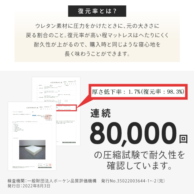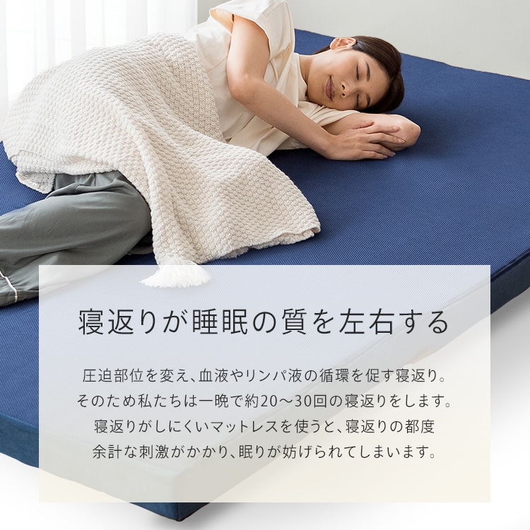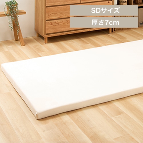 【商品説明】≪特徴1≫ベッドマットレスにも使える厚さ厚さ7cmのマットレスなので、床からの高さが高くなるため、ベッドからの立ち上がりもしやすくなります。≪特徴2≫高反発の寝心地厚さ7cmの高反発ウレタンマットレスは、適度な硬さで身体をしっかり支え、寝心地抜群です。【商品仕様】●商品サイズ(cm)/重量セミシングル:幅約80×奥行約180×厚さ約7/約3.1kgシングル :幅約97×奥行約195×厚さ約7/約4kgセミダブル :幅約120×奥行約195×厚さ約7/約5kgダブル :幅約140×奥行約195×厚さ約7/約5.8kg●材質側生地:ポリエステル100%(表シンカーパイル地/裏メッシュ地)詰め物:70mmウレタンフォーム●密度25D●硬さ硬め:190N●カラーブラウン・アイボリー・グレー・ネイビー